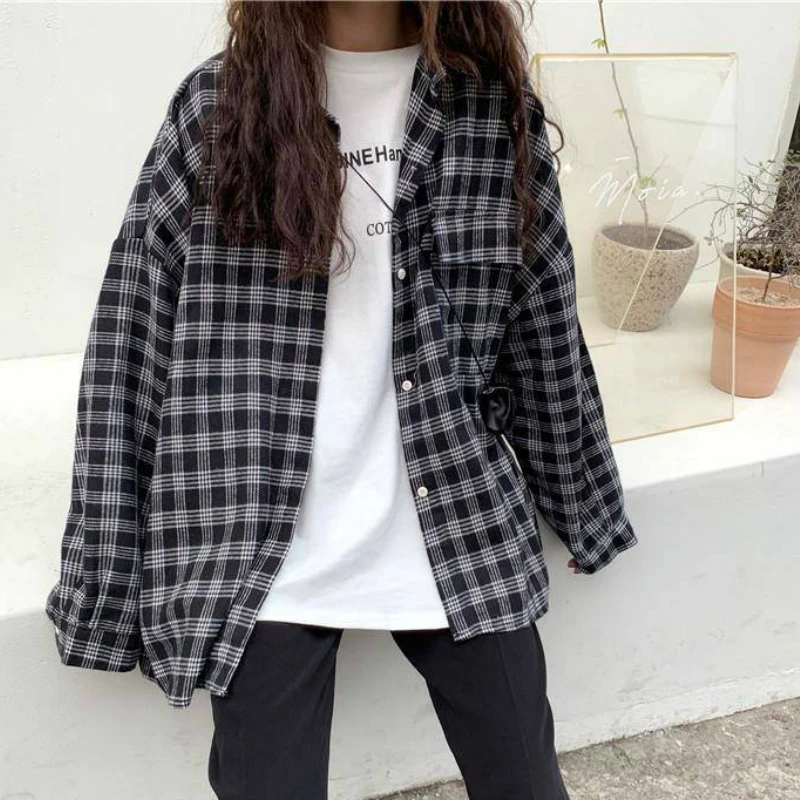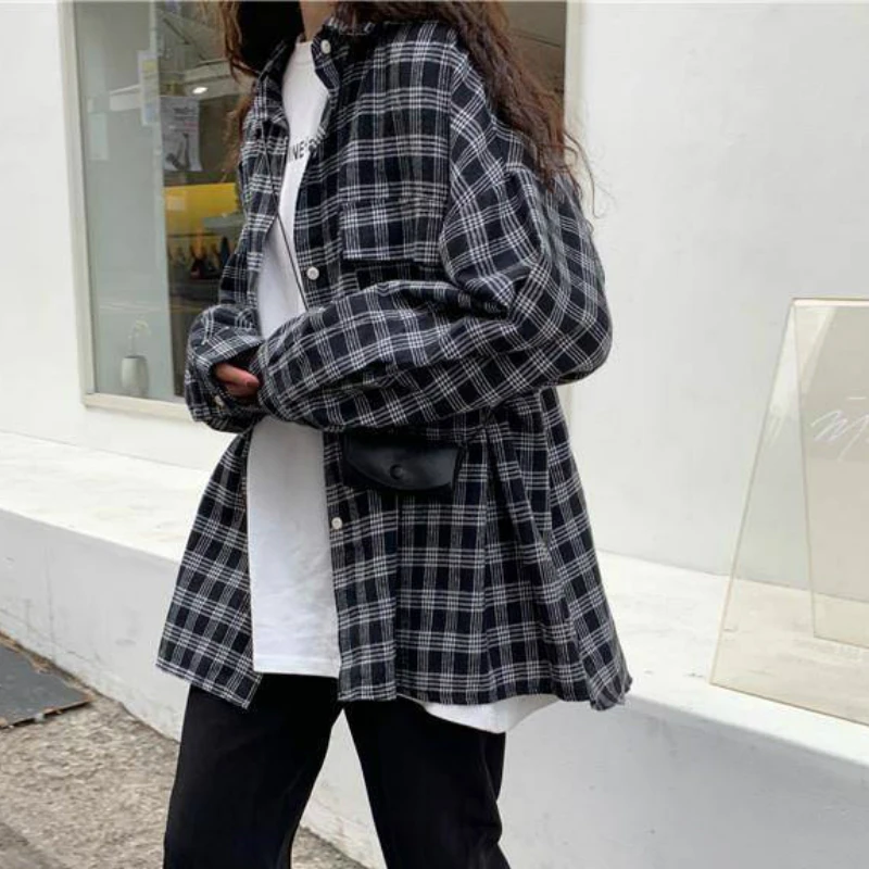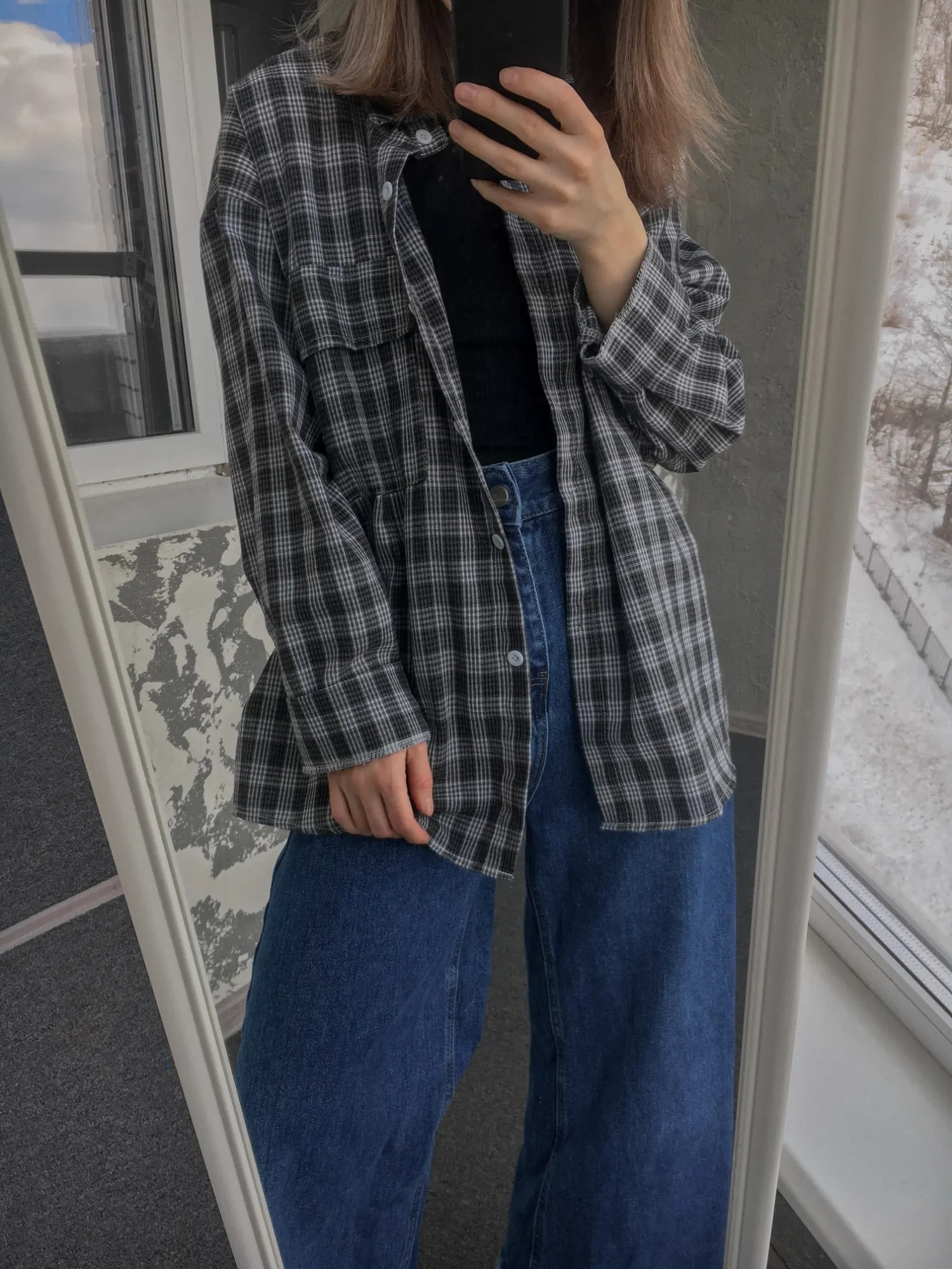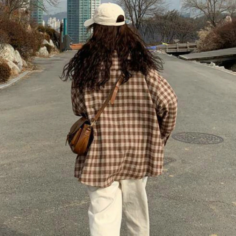 Рубашка женская клетчатая весенняя, с карманом, в стиле ретро