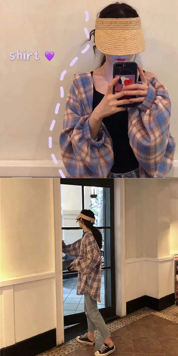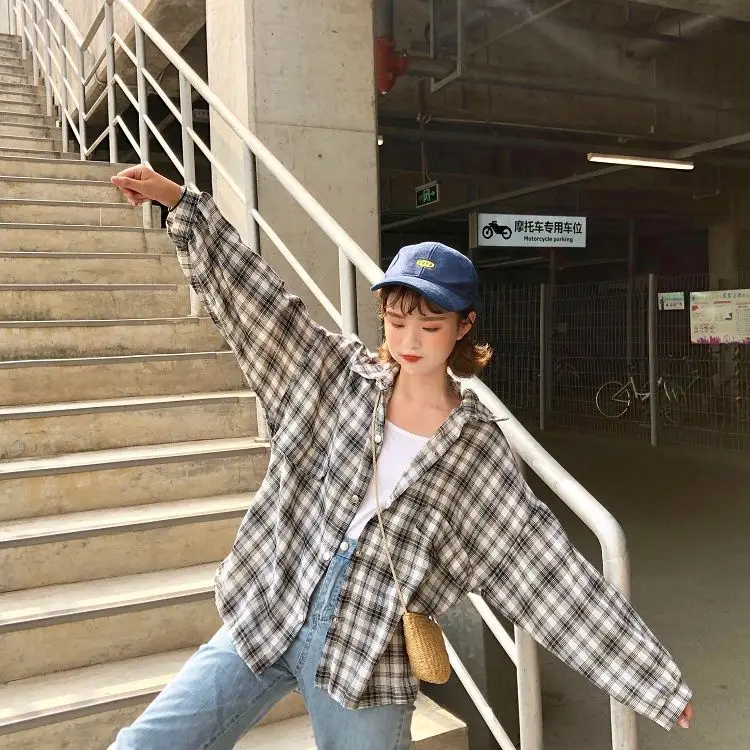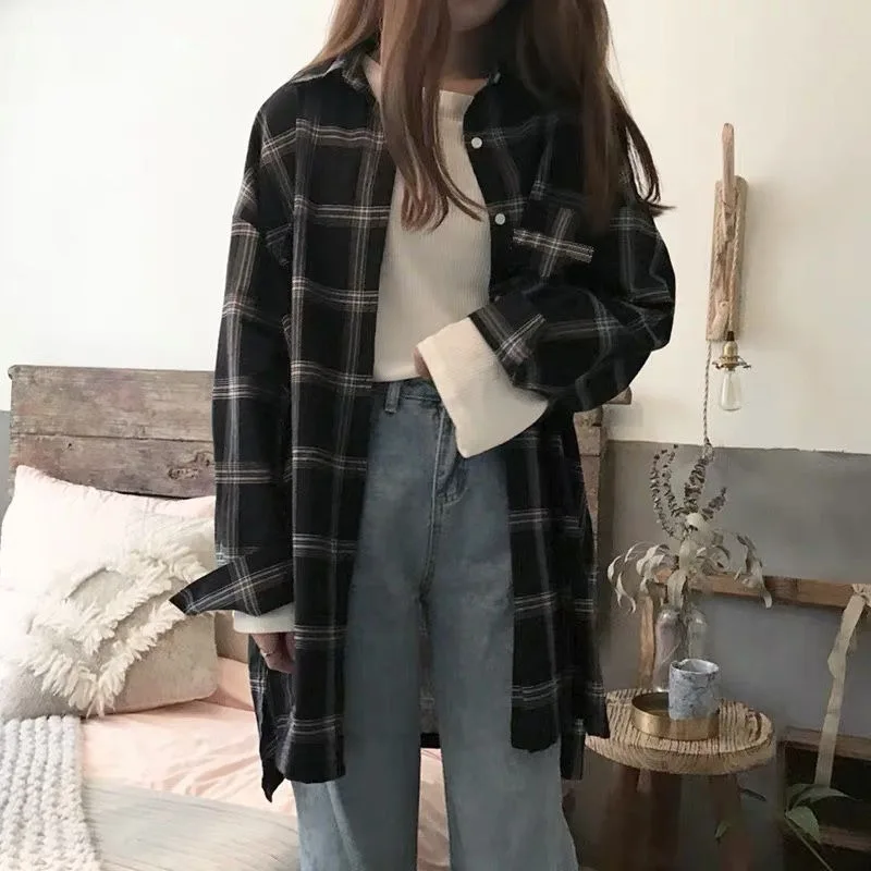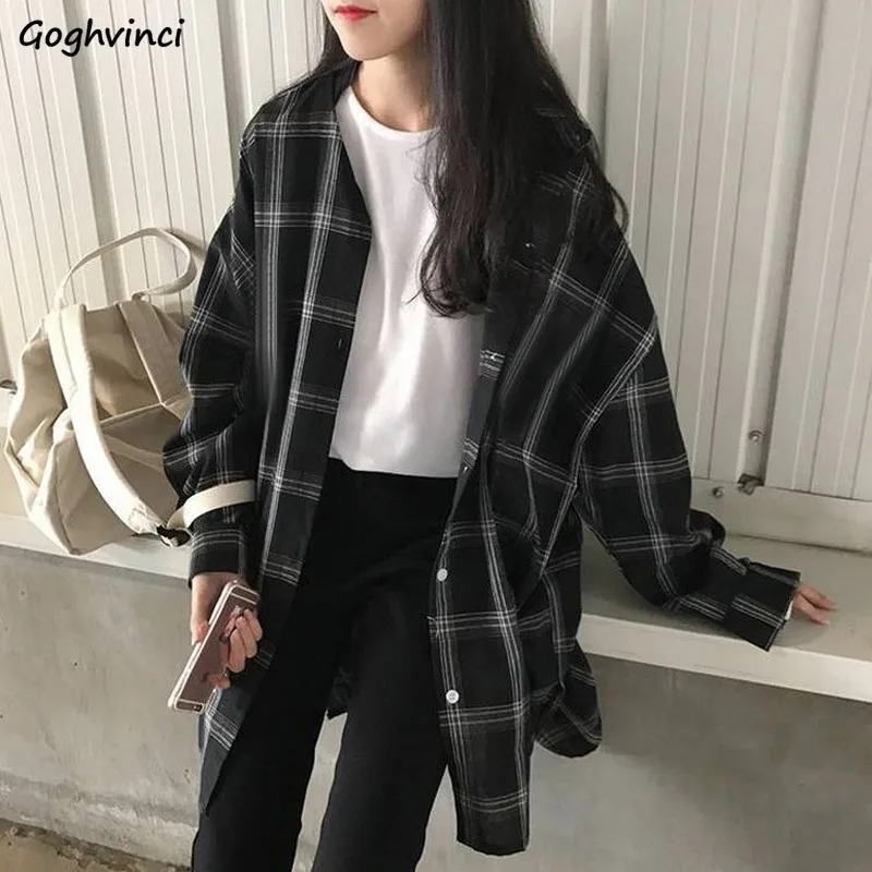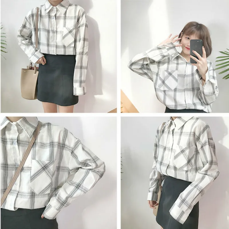 Рубашка Женская весенне-летняя, в клетку, с длинным рукавом