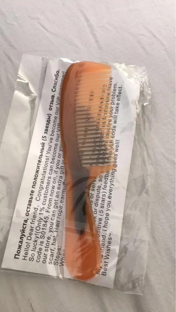 В общем, я довольна. Рубашка не воняет, наоборот, пахнет чем-то приятным. Ткань лёгкая, либо как накидку использовать, либо летом ходить, практически не просвечивается. Но в некоторых местах торчат нитки, это не критично и их можно спокойно убрать, пуговицы также выглядят ненадежно. В комплект положили расчёску, приятная, без запахов