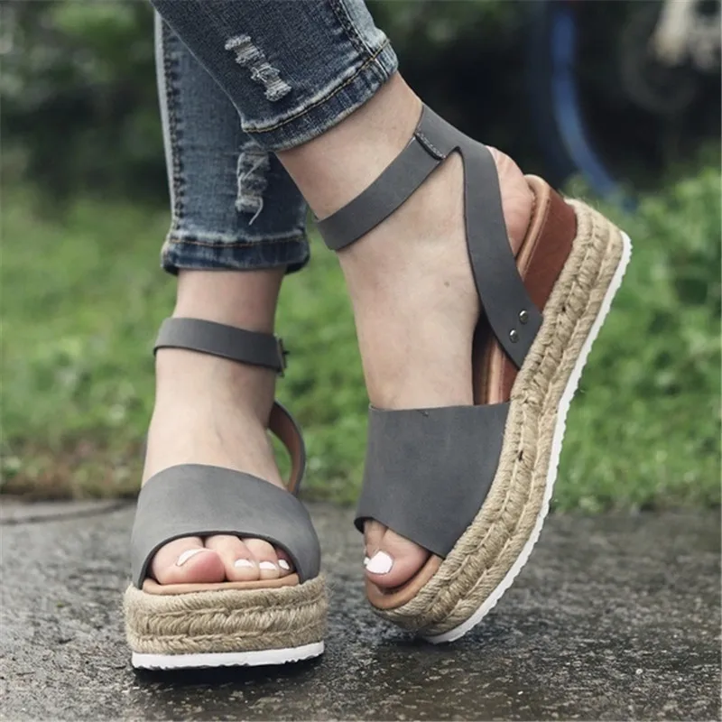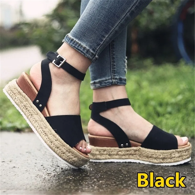 Женские соломенные Босоножки на платформе, летние туфли с открытым носком и ремешком на щиколотке, Летние эспадрильи с регулируемой пряжкой и резиновой подошвой