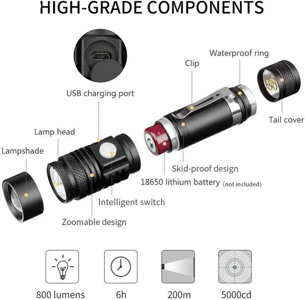 Сверхъяркий светодиодный фонарь ZHIYU, портативный USB-фонарь с зумом, 4 режима, стильный фонарик для улицы, походная велосипедная лампа