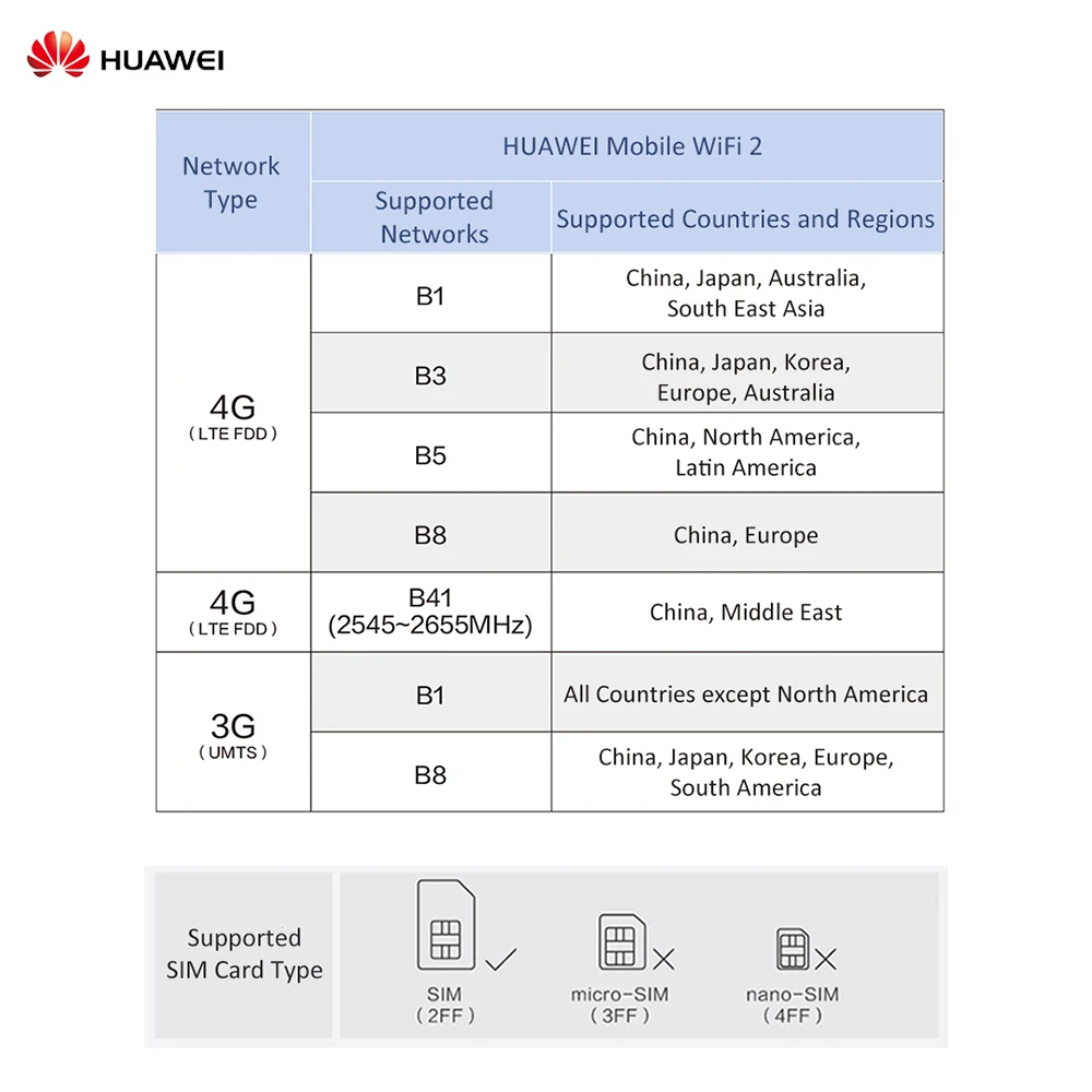 HUAWEI Mobile WiFi 2 имеет небольшой, легкий, разблокированный 3G/4G, высокоскоростной LTE и 6 часов работы, что удобно для игр, работы и путешествий. Особенности: [Компактный и портативный]Измеряет толщину 1,28 см и вес 75 г, HUAWEI Mobile WiFi 2 достаточно мал, чтобы держать в руке и кармане для путешествий. [Разблокирован 3G/4G]Поддерживает высокоскоростной LTE 150 Мбит/с, вы можете быстро загружать онлайн hd-видео, страницы покупок или игры за считанные секунды. [16 одновременных соединений]Это устройство поддерживает стандартный Wi-Fi 802,11 n/b/g, и соединение является стабильным и может подключаться одновременно до 16 пользователей. [Долговечный аккумулятор премиум класса]Высококачественная батарея емкостью 1500 мА · ч поддерживает до 6 часов работы и 350 часов работы в режиме ожидания. [Умное приложение]Поддерживает функции Wi-Fi для посетителей, сети, настройки имени и пароля, скрытый Wi-Fi и многое другое. Характеристики: Бренд: HUAWEI Модель: E5572-855 Цвет: белый Материал: АБС-пластик Совместимость: поддерживает Windows 7/8/8.1/10, Max OS X10.9/10,10/10,11/10,12 или более поздней версии. Интерфейс: 1 * Micro USB, 1 * sim-карта (2FF) Тип сети: 4G/3G LTE: B1/B3/B5/B8/41 (B41: 2545 ~ 2655 МГц) UMTS: B1/B8 Protocal Wi-Fi: 802,11 n/b/g, 2,4 ГГц Антенна: встроенная LTE/UMTS/WiFi антенна Аккумулятор: 1500 мАч (максимальное время использования 6 часов; Максимальное время работы в режиме ожидания 350 часов) Размер изделия: 9,68*5,8*1,28 см/3,81*2,28*0,5 дюйма Размер посылка: 13,6*7,7*5,2 см/5,35*3,03 * 2.04in Вес изделия: 75 г/2,64 унций Вес посылки: 190 г/6,7 унций Примечание: Все данные являются теоретическими значениями, полученными внутренними лабораториями HUAWEI посредством испытаний, проводящихся в определенных условиях. Посылка: 1 * мобильный WiFi 1*17 см кабель Micro USB 1 * Руководство пользователя