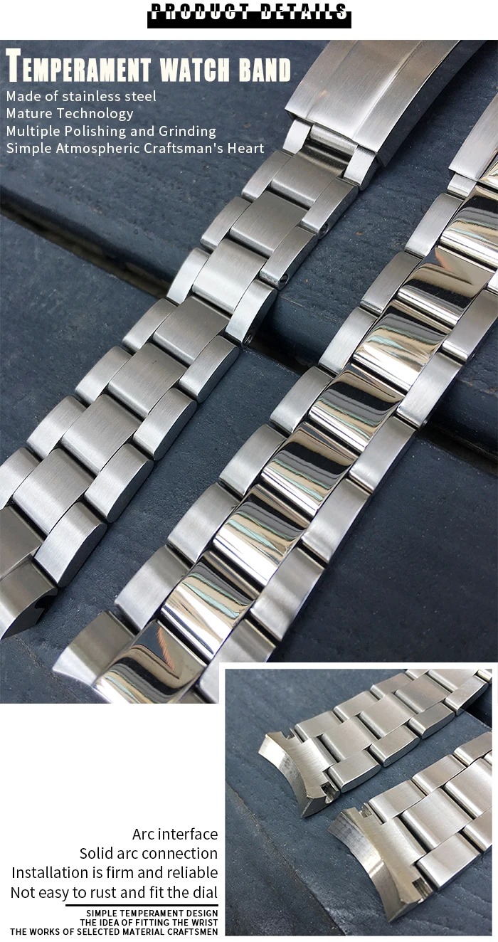 Высококачественный ремешок для часов из нержавеющей стали 904L, 20 ...