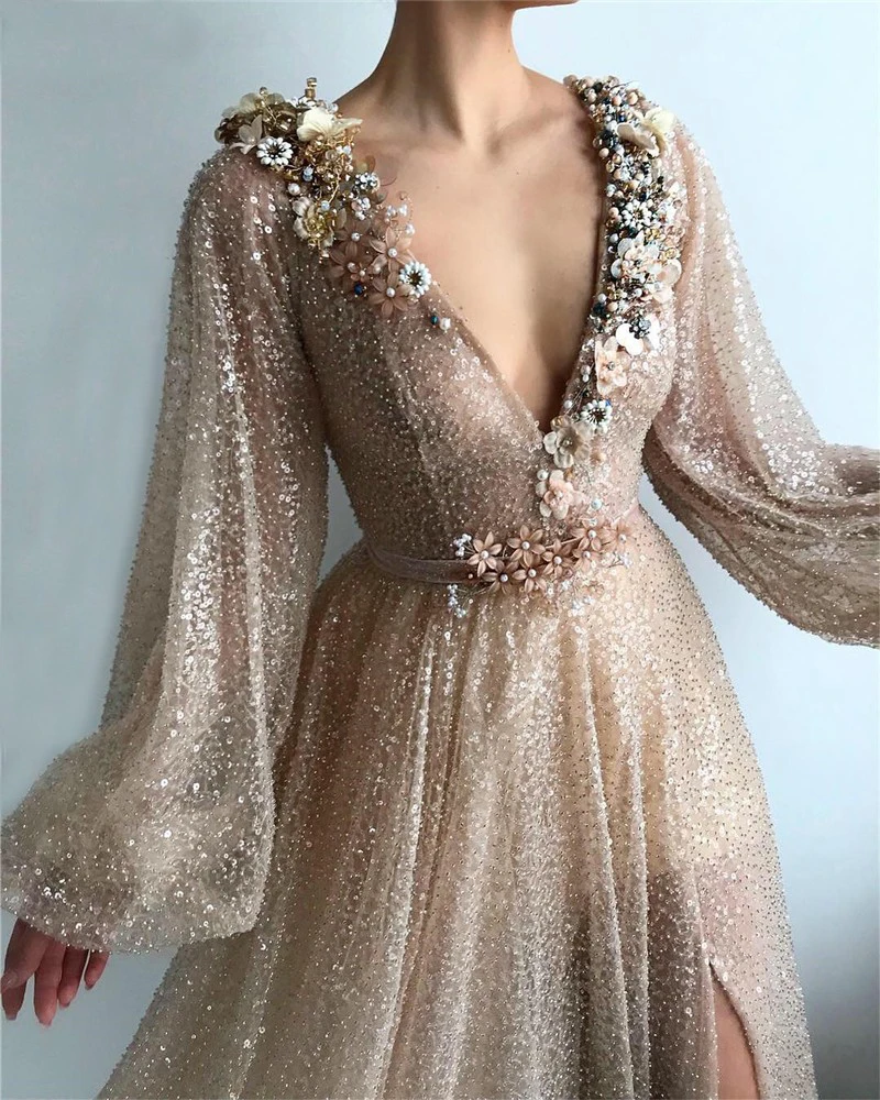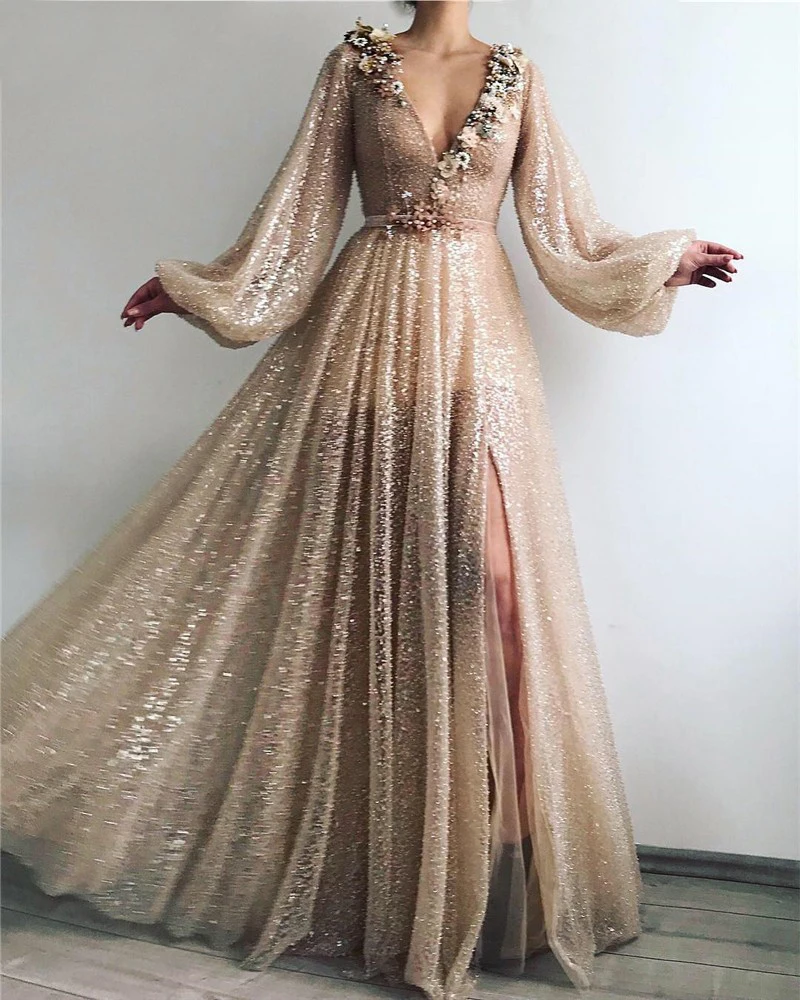 Платье женское ТРАПЕЦИЕВИДНОЕ с V-образным вырезом и блестками