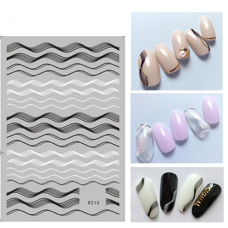 1 лист 3D наклейка для ногтей изогнутые полосы линия наклейка для ногтей s градиентная клейкая Полоса лента для ногтей Фольга для ногтей Стикеры для ногтевого дизайна наклейки s
