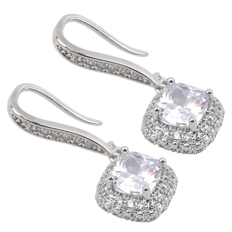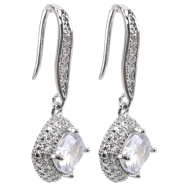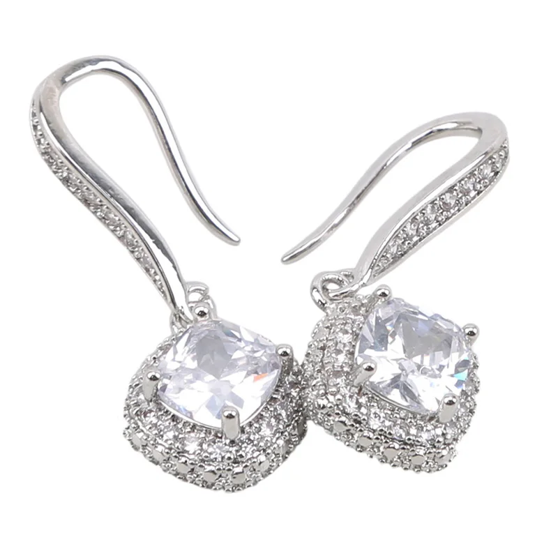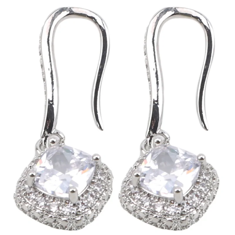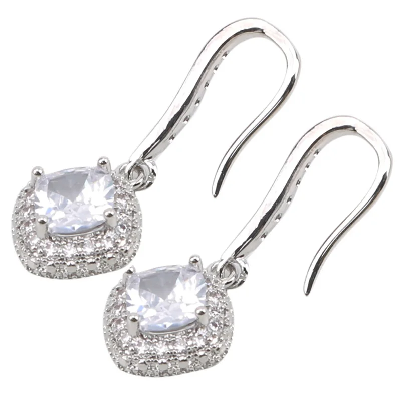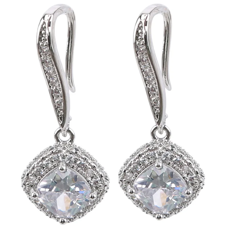 Серьги-подвески женские серебряного цвета с белым цирконом