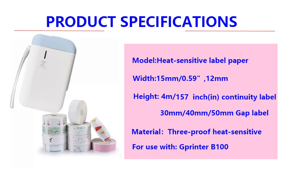 B100 Термальность этикетка Бумага B100 мини принтер для этикеток Бумага Водонепроницаемый с защитным напылением от жирных следов и ценовой ярлык полихроматический, устойчивое к царапинам