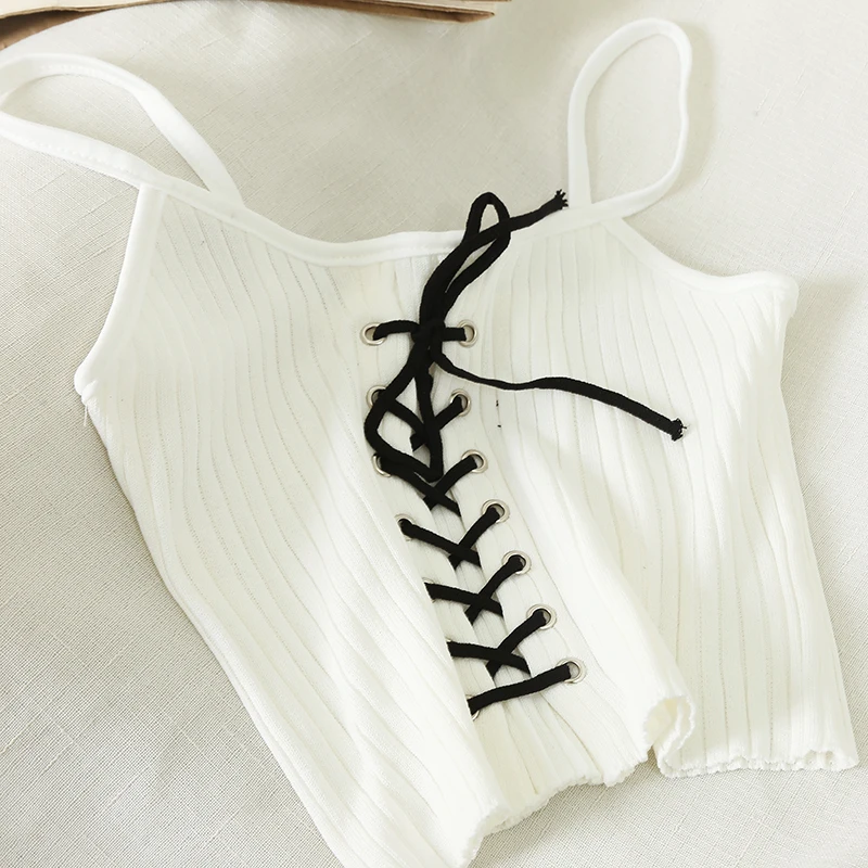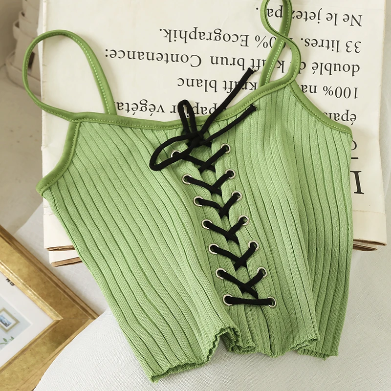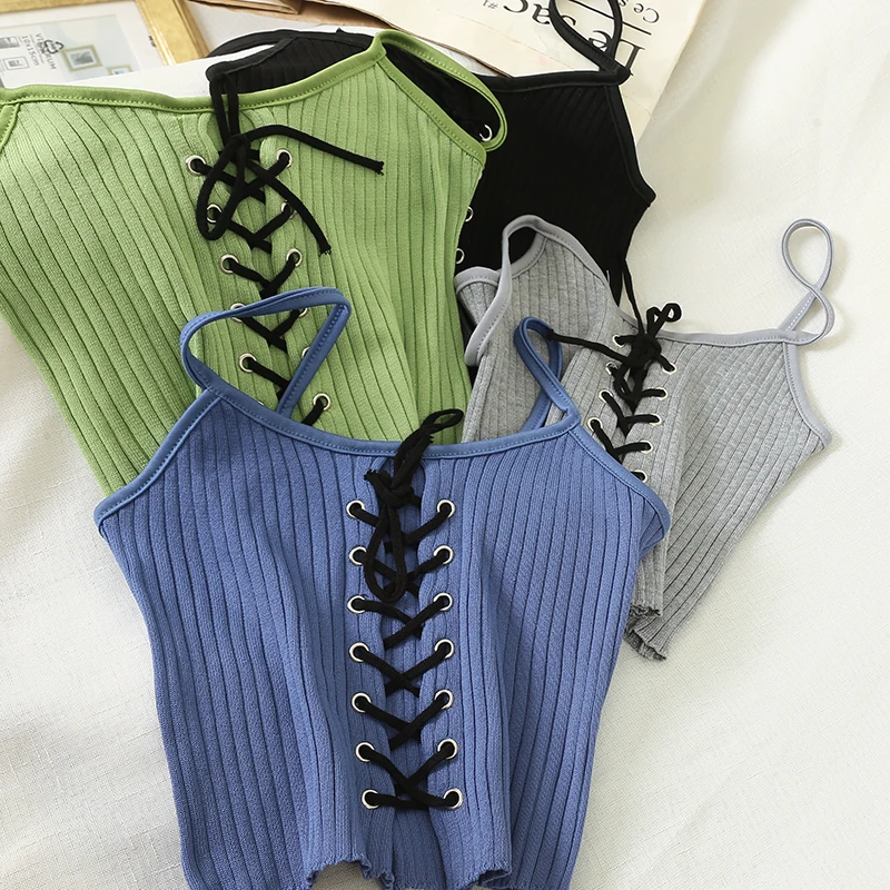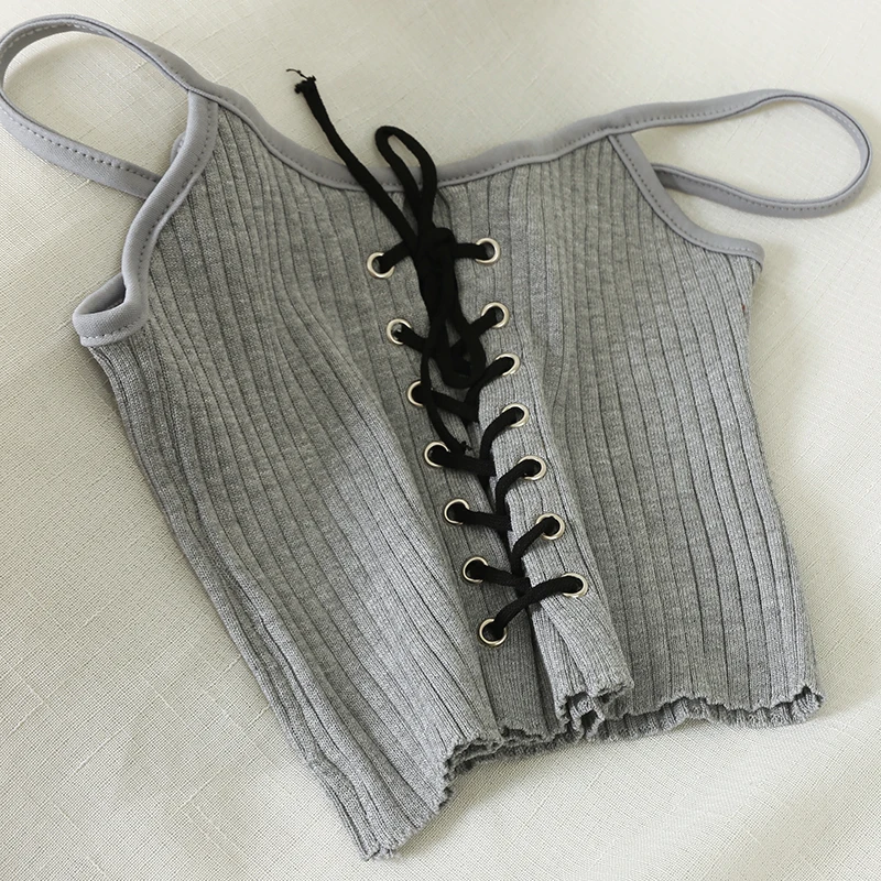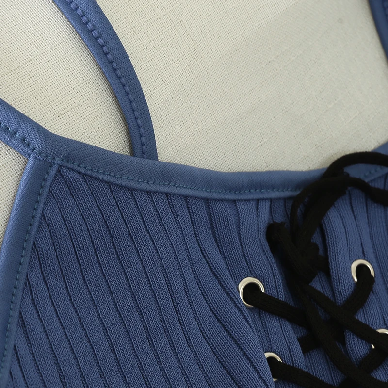 Топ женский вязаный в рубчик, со шнуровкой спереди, без рукавов
