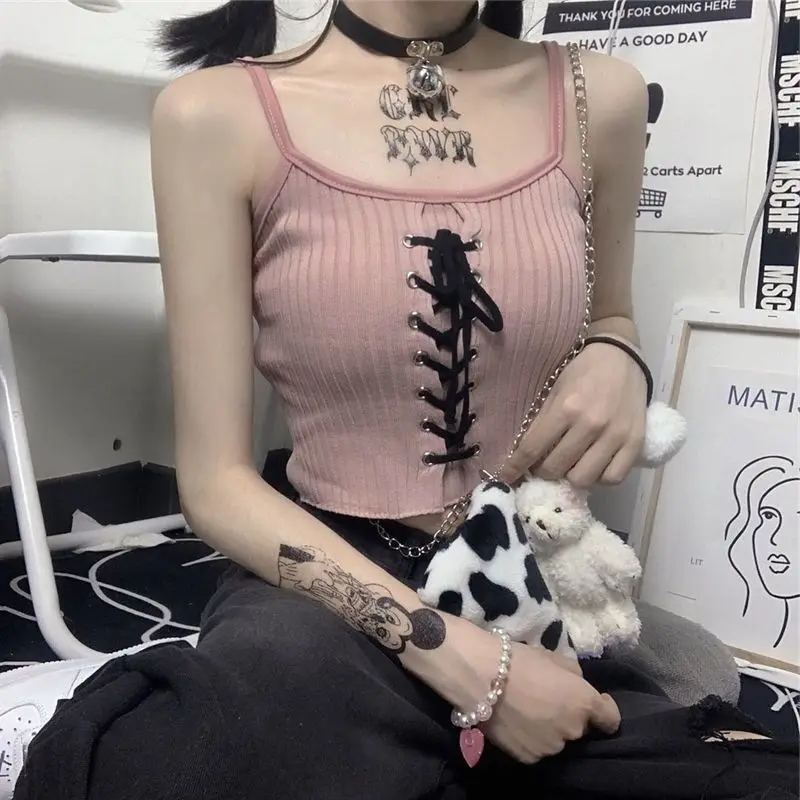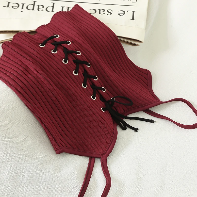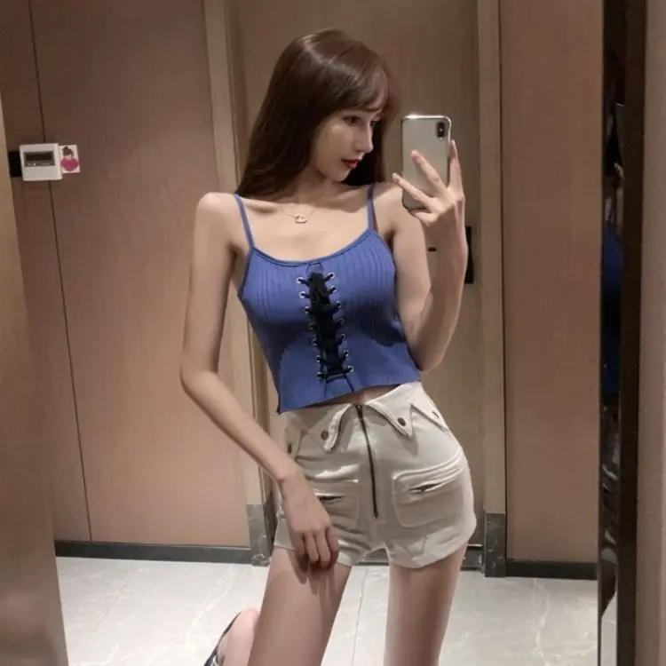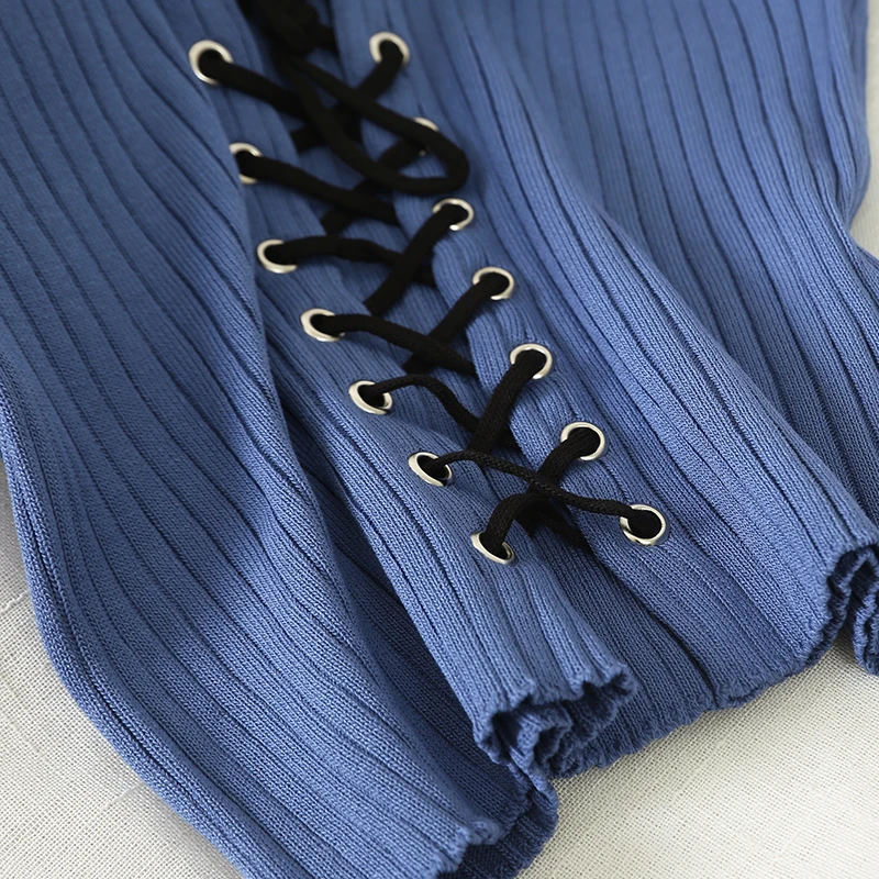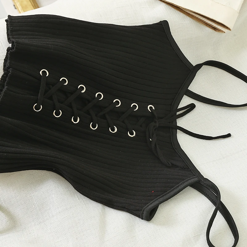 Топ женский вязаный в рубчик, со шнуровкой спереди, без рукавов
