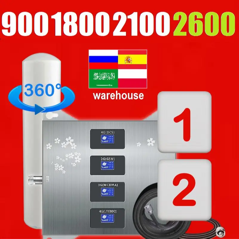 Стандартный воздушный змей1 усилитель (адаптер переменного/постоянного тока европейского стандарта) 1 шт.2-наружная всенаправленная антенна 1 шт3-Крытый панельная антенна 1 шт.4-Coxial кабель 10 метров 1 шт5-Coxial кабель 3 метра 1 шт