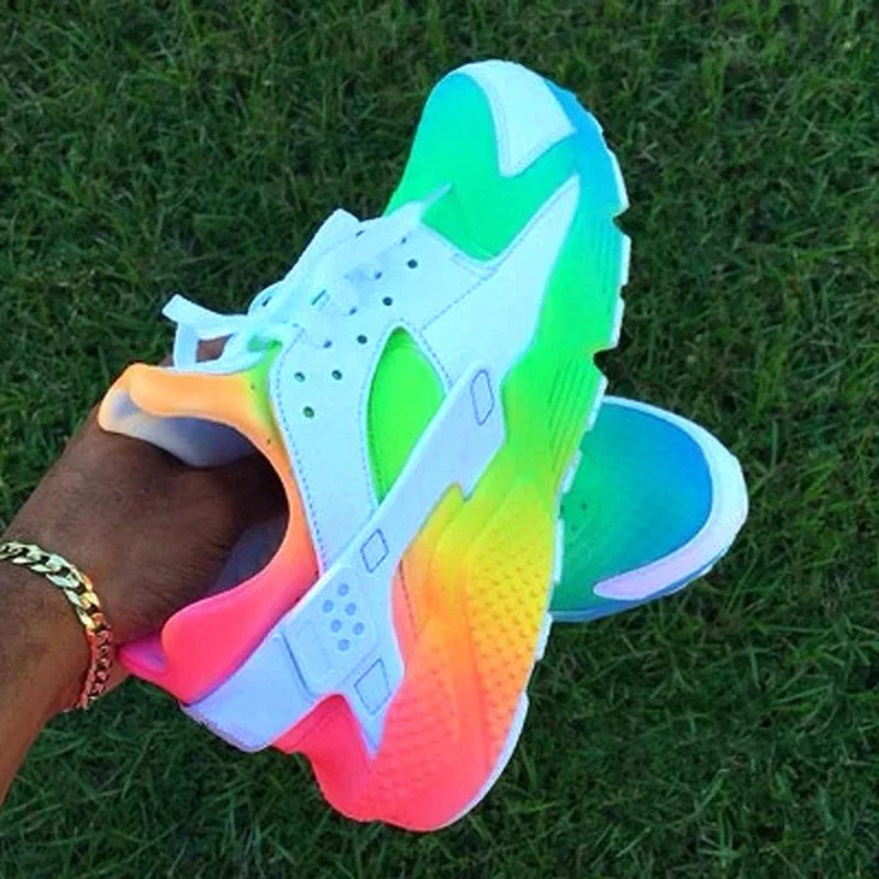 Женские разноцветные сетчатые дышащие Туфли-кроссовки радужной расц...