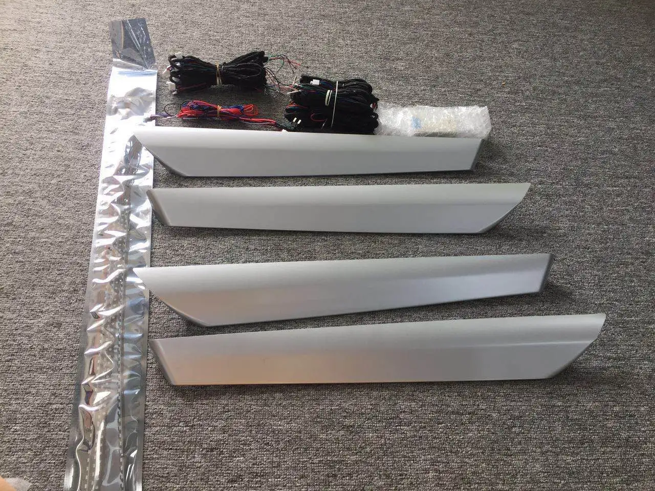 10 ламп: 4 дверных светильника (1 дверь 2 Фары) + дверная отделка + 2 фонаря. Отделка выполнена в 4 цветах: черном, серебристом, коричневом, красном дереве. Пожалуйста, обратите внимание при размещении заказа. Новейший X3: 4 дверный светильник (3 на одной двери) + 2 Центрального управления полосы вверх и вниз + 2 footwell светильник s.