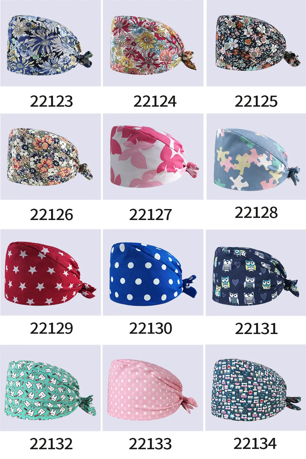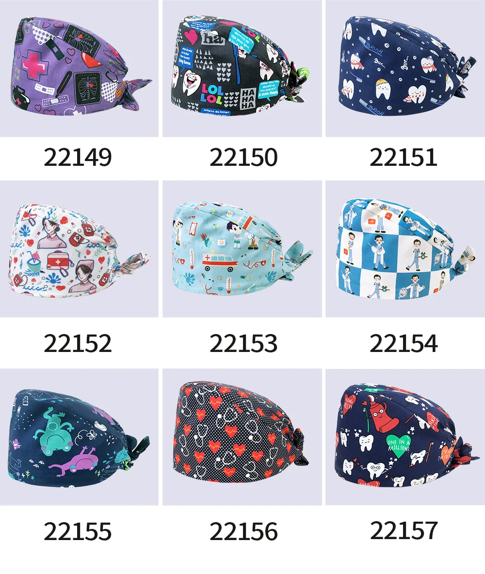 Шапка для медсестры с цветочным узором, регулируемая шапка с разным...