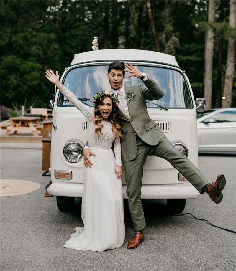 Женское свадебное платье в стиле бохо, кружевное платье с длинным рукавом и открытой спиной, пляжное платье невесты, 2020