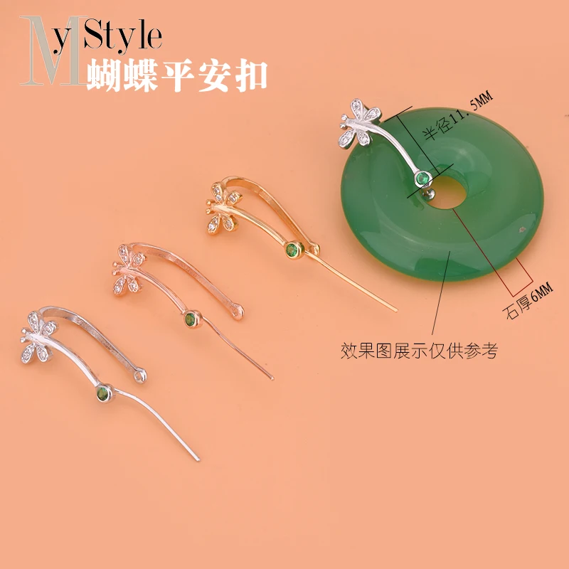Пуговица-бабочка из чистого серебра S925 пробы с цирконием простые универсальные, Нефритовый Кристалл самодельные Украшения, Аксессуары