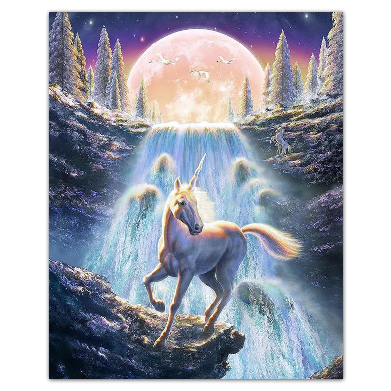 Алмазная мозаика 5D сделай сам, картина из страз с изображением единорога, водопада, квадрата, круглых страз, вышивка, домашний подарок