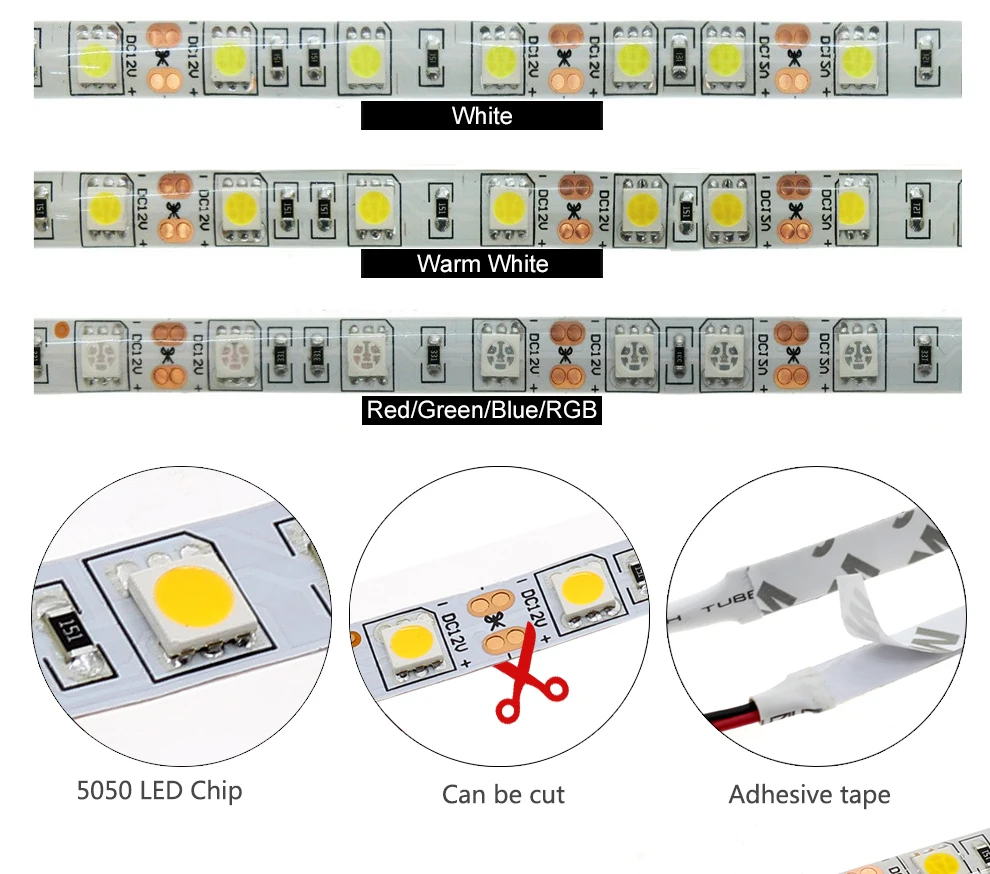 Светодиодные ленты Размеры: 5050(5 м * 1 см), 2835(5 м * 0,8 см), (Д * Ш * В).