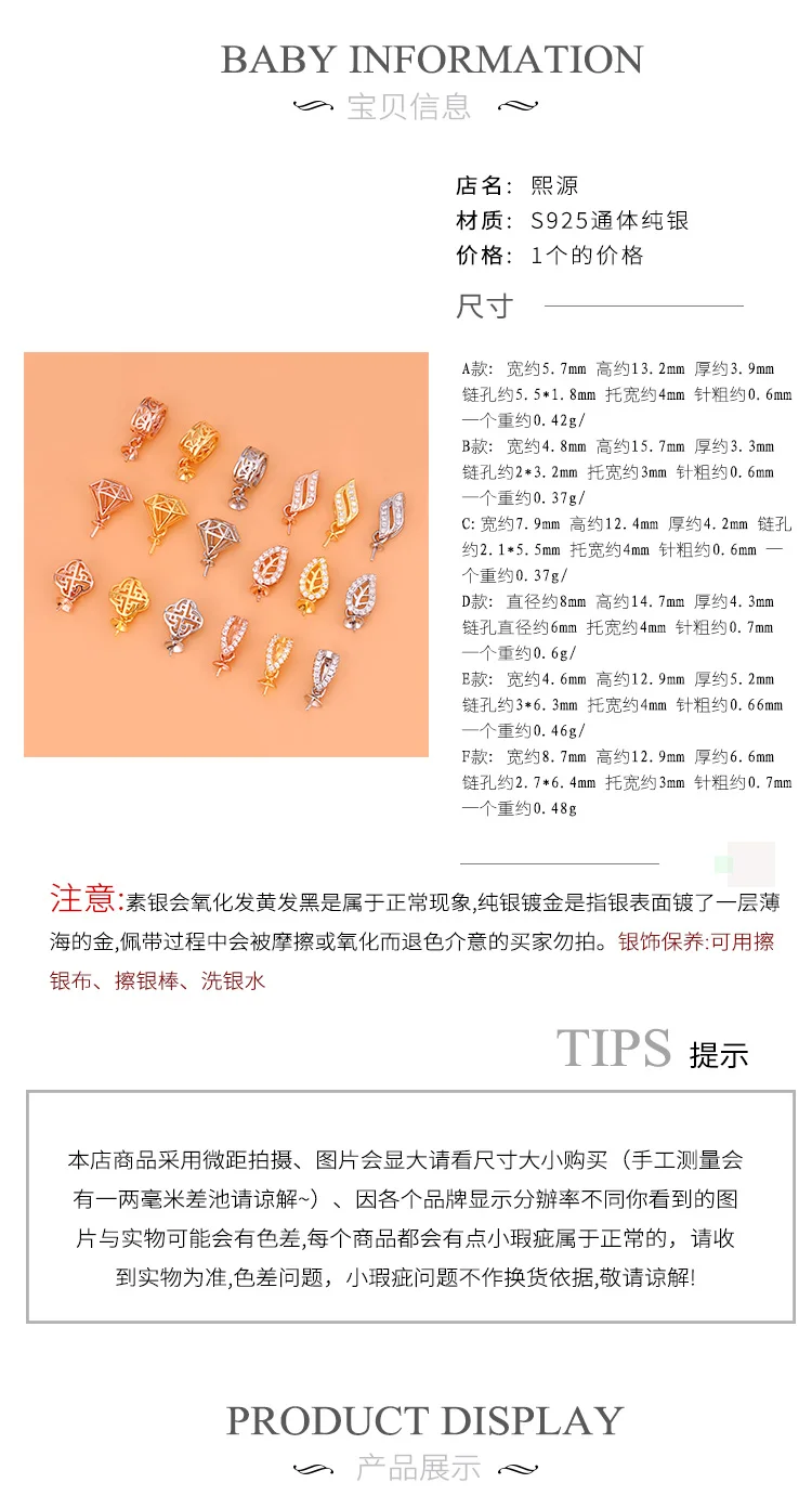 925 Серебряный лист алмазный кулон пустой держатель небольшой свежий алмаз инкрустированный полуобработанный липкий бисер DIY Ожерелье Подвеска Аксессуары
