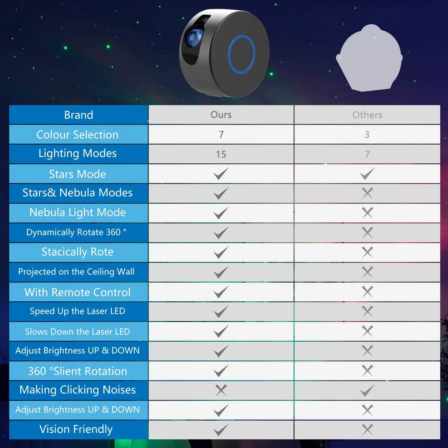 Свободно включайте/выключайте ночсветильник, меняйте световой эффект, регулируйте яркость вверх и вниз, замедляйте светодиодный ускоряйте светильник КУ, просто подключи и играй (Перед включением убедитесь, что проектор правильно подключен к источнику питания).