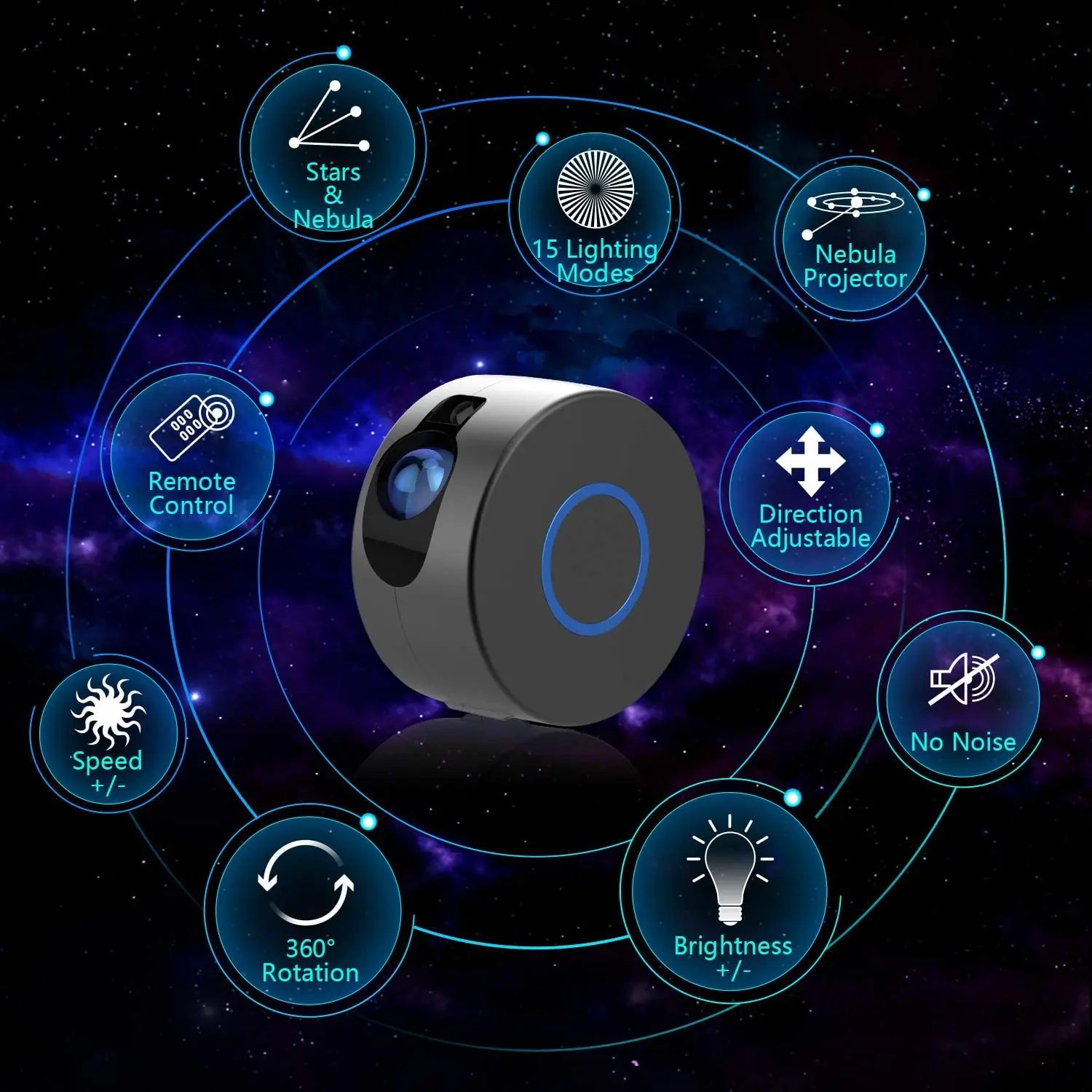 Проецируйте свою галактику с помощью проектора galaxy. Мгновенно преобразует любое пространство с множеством цветов и звезд, расслабьте пространство в путешествии с комфортом в собственном доме.