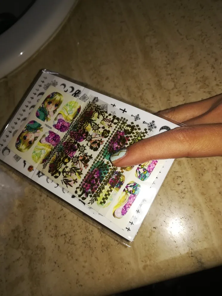 Отправили быстро, пришли быстро, отслеживались только а алиэкспресс. Рисунок потрясающий, мне очень нравится. Эти наклейки еще не использовала, но я заказывала сразу 2 набора, воспользовалась вторым. Сначала мне все понравилось, накрасила, наклеила, накрасила. На все минут 15. К сожалению, через несколько дней наклейки начали отслаиваться по краям, через неделю слезли полностью, оставив только базовый лак и липкий слой на нем от самих наклеек. Жаль, потому что наклейки мне понравились, планировала заказывать регулярно, теперь, конечно, не вижу в этом смысла.
