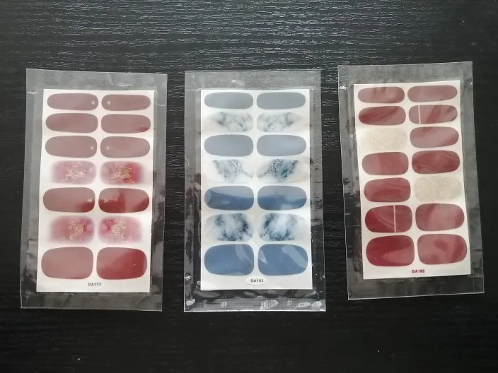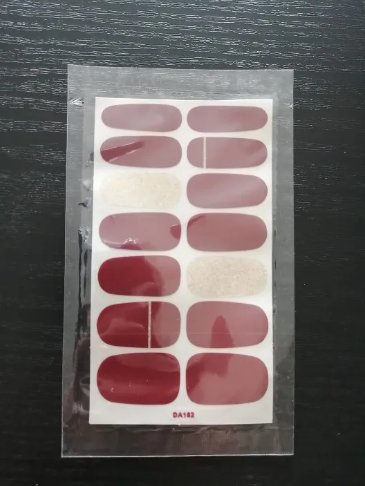 отличная альтернатива маникюру, качественные наклейки, легко тянутся и переносятся на ноготь, при этом пластина ногтя не травмируется. довольно хорошо держаться, даже если заниматься домашними делами. прекрасное решение - когда надо быстро придать ногтям красивый вид. покупкой довольна, товар и продавца рекомендую.