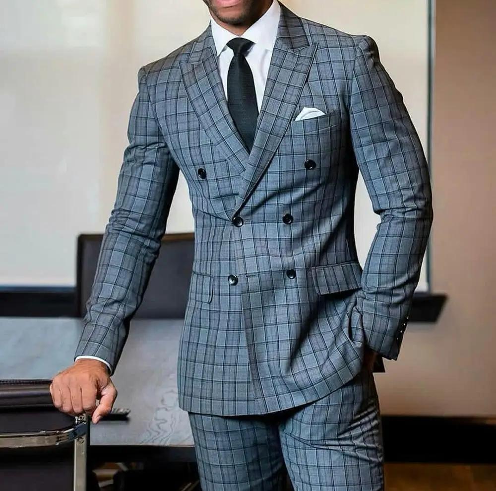 Новинка, классические мужские свадебные смокинги в клетку, двубортный пиджак с лацканами для жениха, одежда для деловых встреч, выпускного вечера, лучший мужской блейзер, костюм из 2 предметов