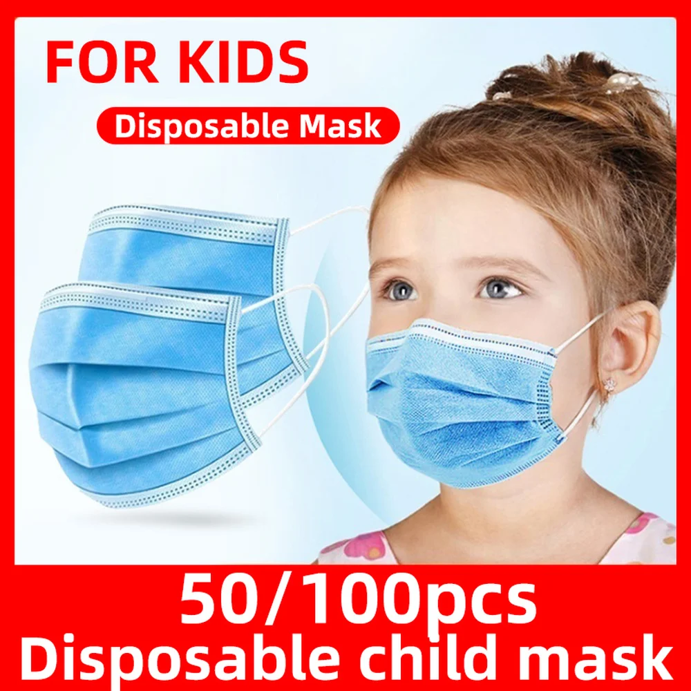 Маска для лица одноразовая трехслойная для детей и мальчиков, 100 шт.