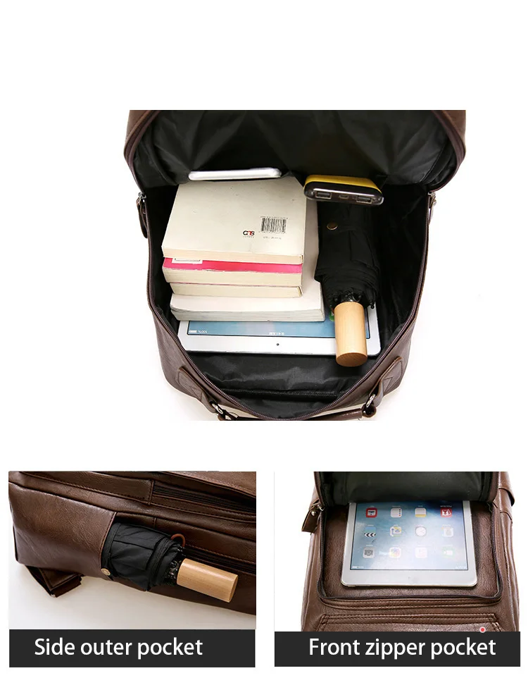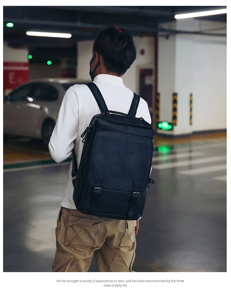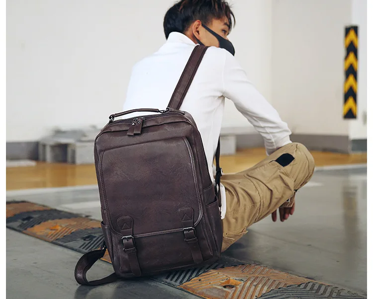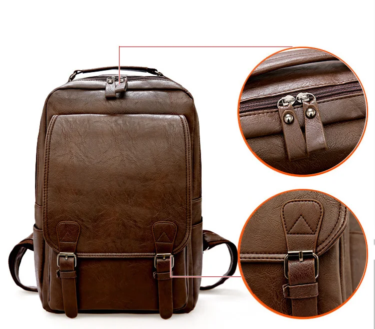 Рюкзак мужской из искусственной кожи, на молнии, с отделением для ноутбука, водонепроницаемый, в стиле ретро