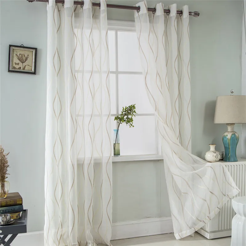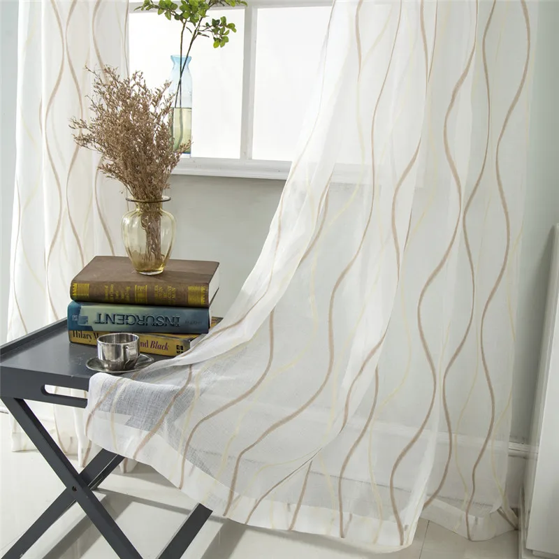 Жаккардовая прозрачная занавеска с волнистыми полосками, украшение для дома, белая Тюлевая занавеска для кухни, гостиной, спальни, оконная драпировка