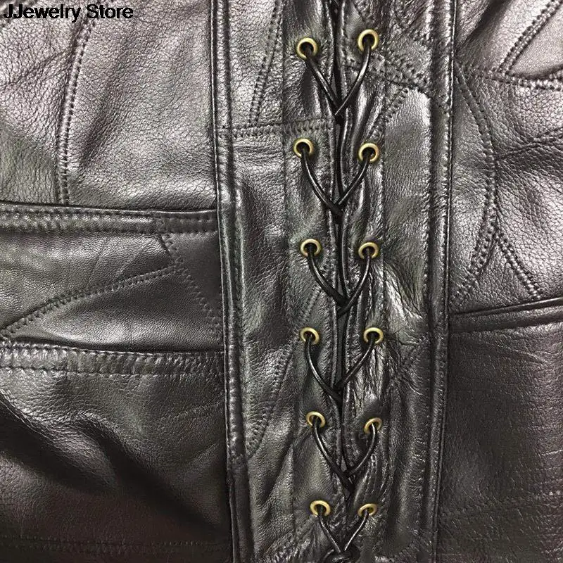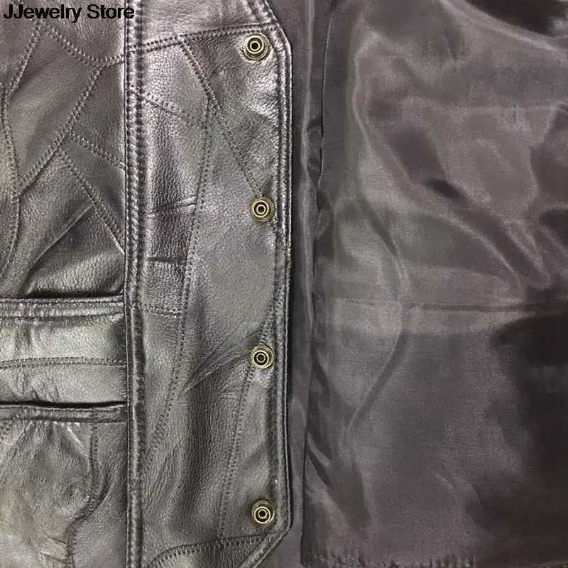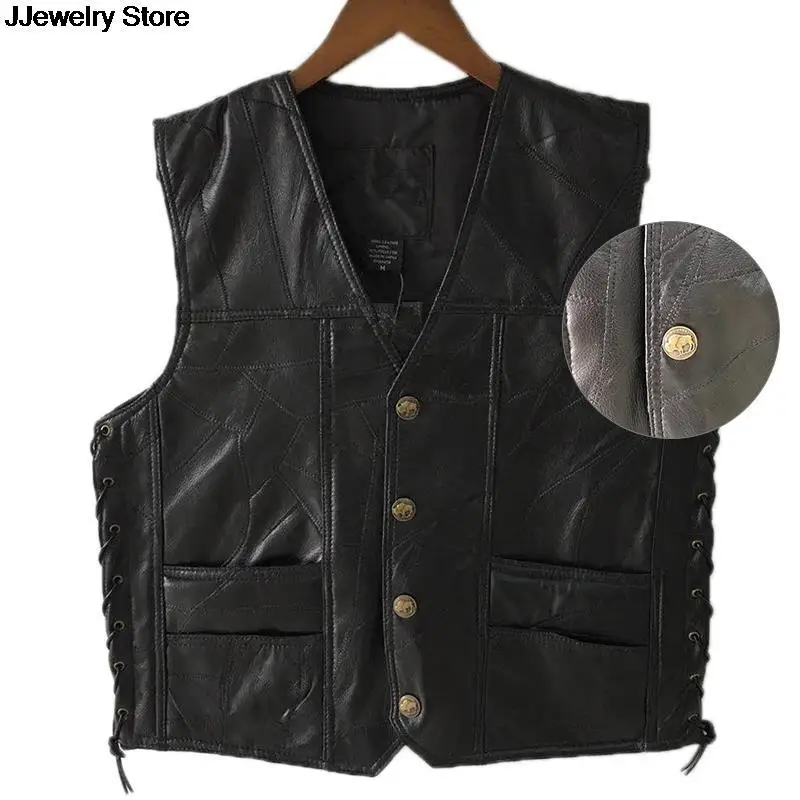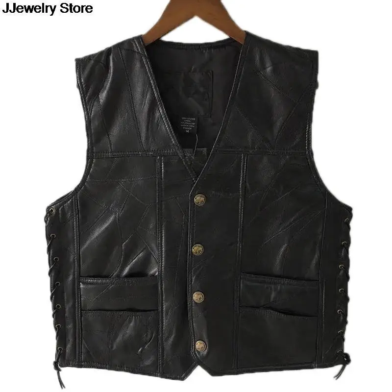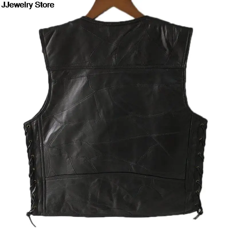Жилет мужской кожаный мотоциклетный, Байкерский жилет из натуральной кожи в стиле панк, кружевная куртка без рукавов на пуговицах, осень 2020