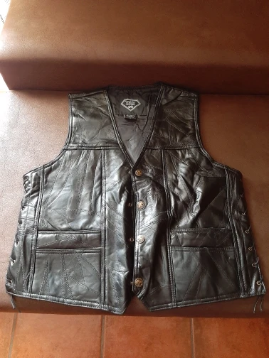 vigile è fatto In vera pelle sono transunti di piccoli pezzi messi insieme molto gradevole da vedere comodo da indossare dopo aver comprato uno per me ho comprato altre per il mio gruppo motociclistico un prezzo vantaggioso è un ottima qualità
