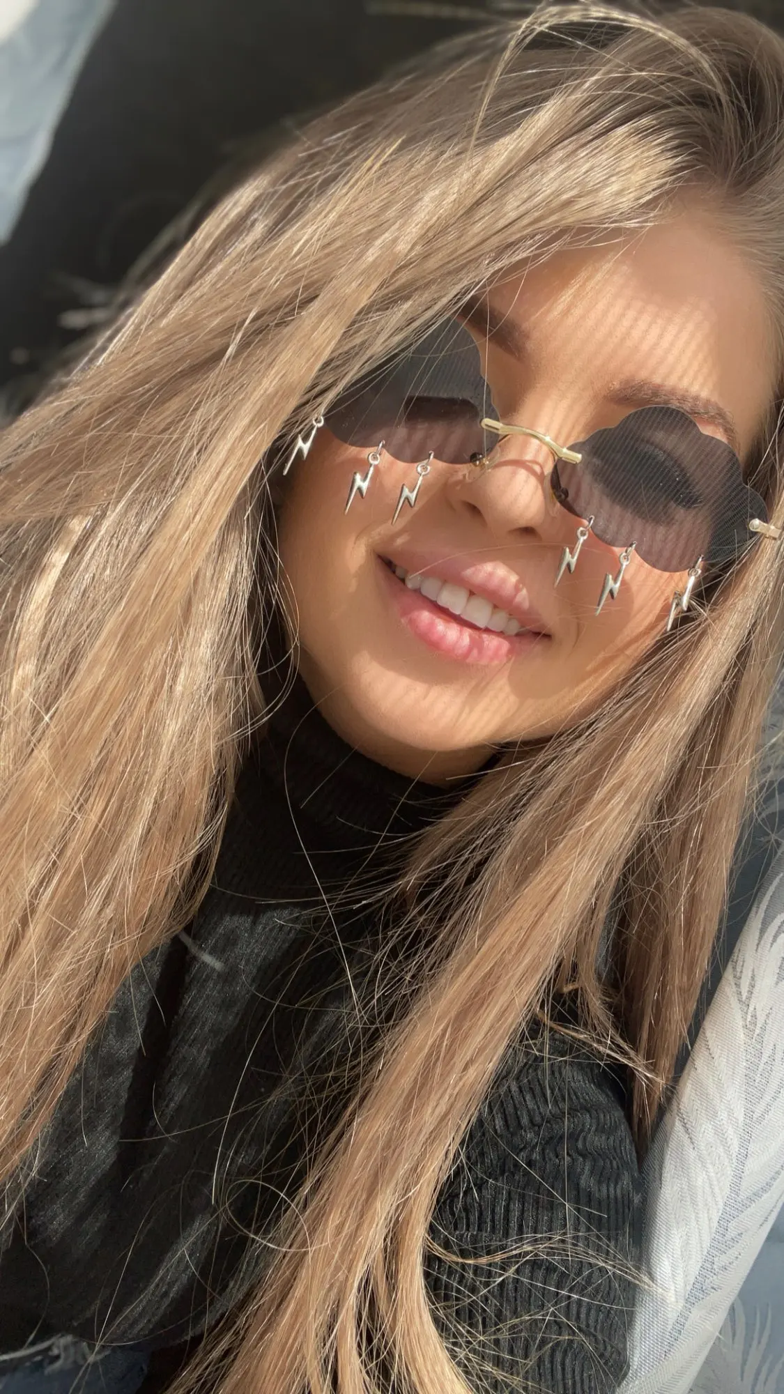 Солнцезащитные очки женские, без оправы, с подвеской с молнией, UV400, SG028
