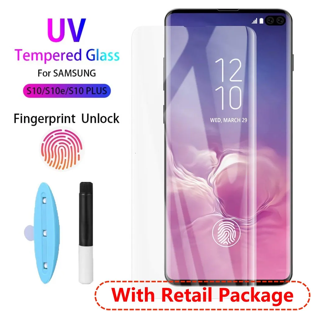 2 шт. УФ закаленное стекло для Samsung S10 E S20 Ultra S9 Plus полн...
