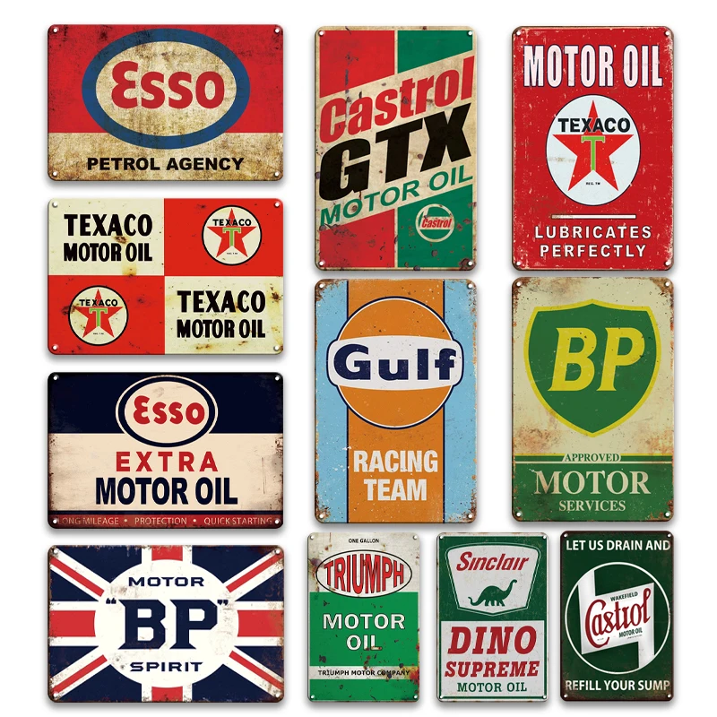 Esso Castrol оловянные плакаты, моторное масло, металлическая пластина, винтажный гараж, Настенный декор, таблички, ретро, мужская пещера, знак для украшения дома