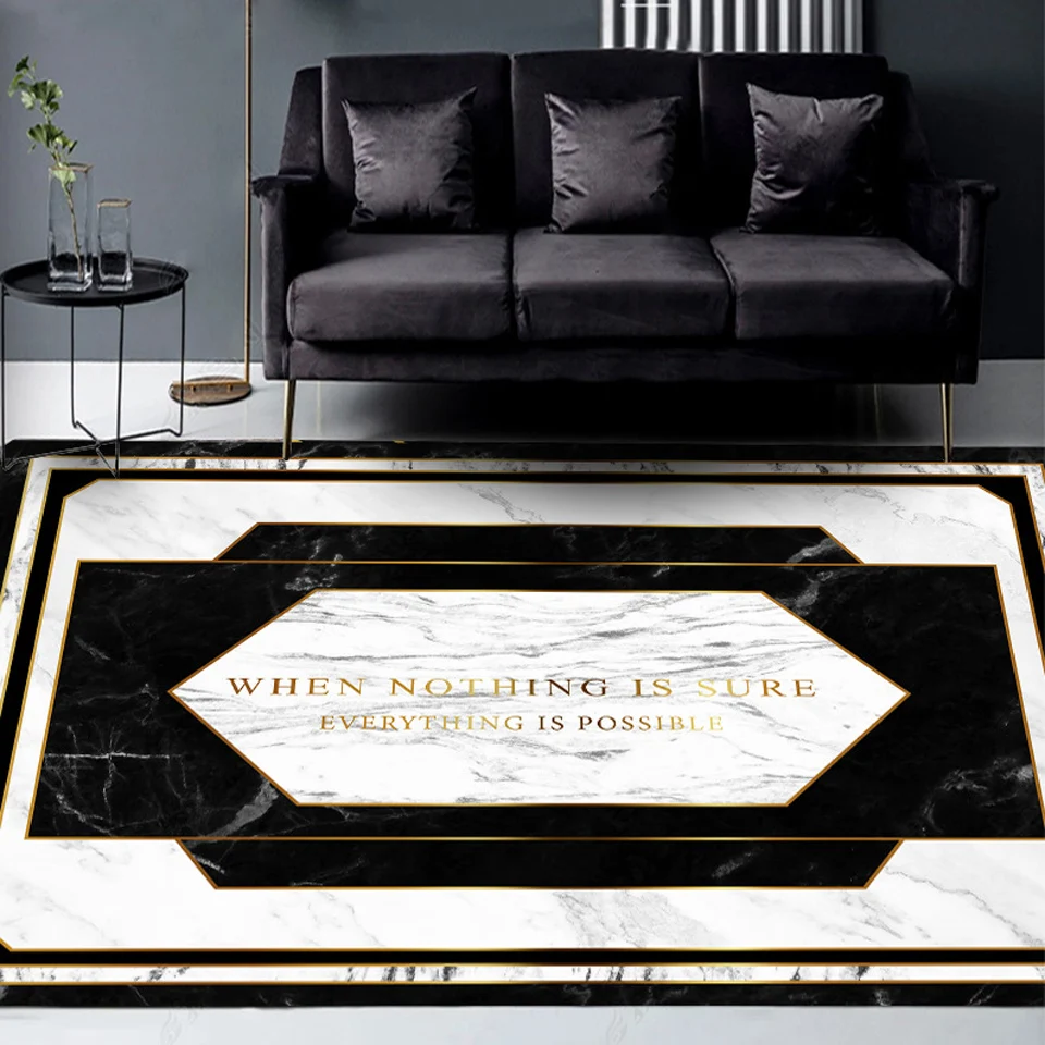 Простой напольный ковер, черный, белый, серый, золотой ковер с мраморным узором и надписью, кухонный нескользящий моющийся коврик для декора комнаты