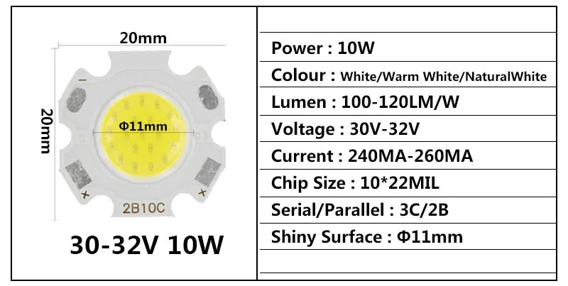 10 шт. в партии, 3 Вт, 5 Вт, 7 Вт, 10 Вт, светодиодная лампа COB на борту, светодиодные диоды 250 мА, светодиодсветильник лампа высокой мощности, точечный светильник, точечные светильники, лампы для самостоятельной сборки
