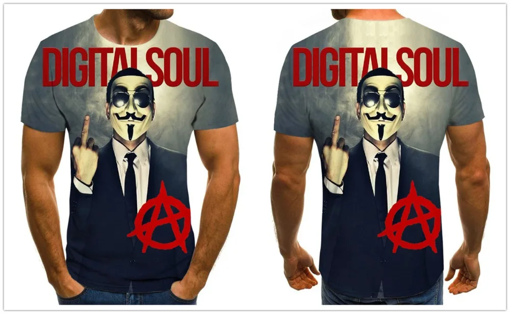 Мужская футболка с 3D-принтом Вендетта, летняя спортивная футболка ...