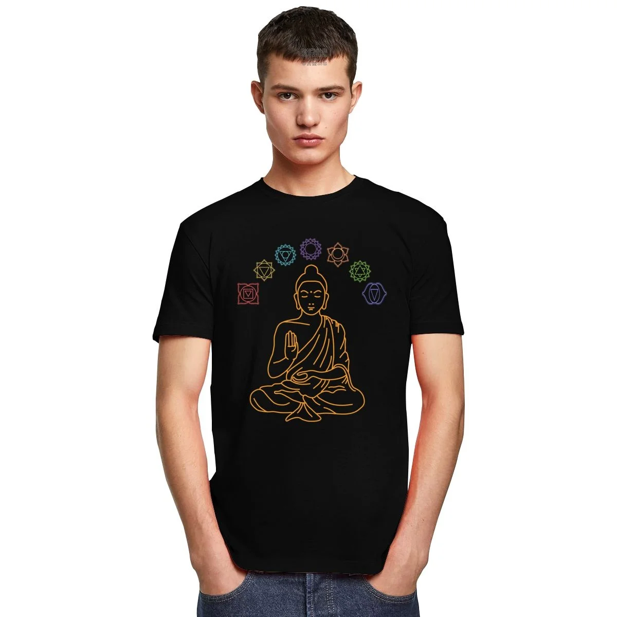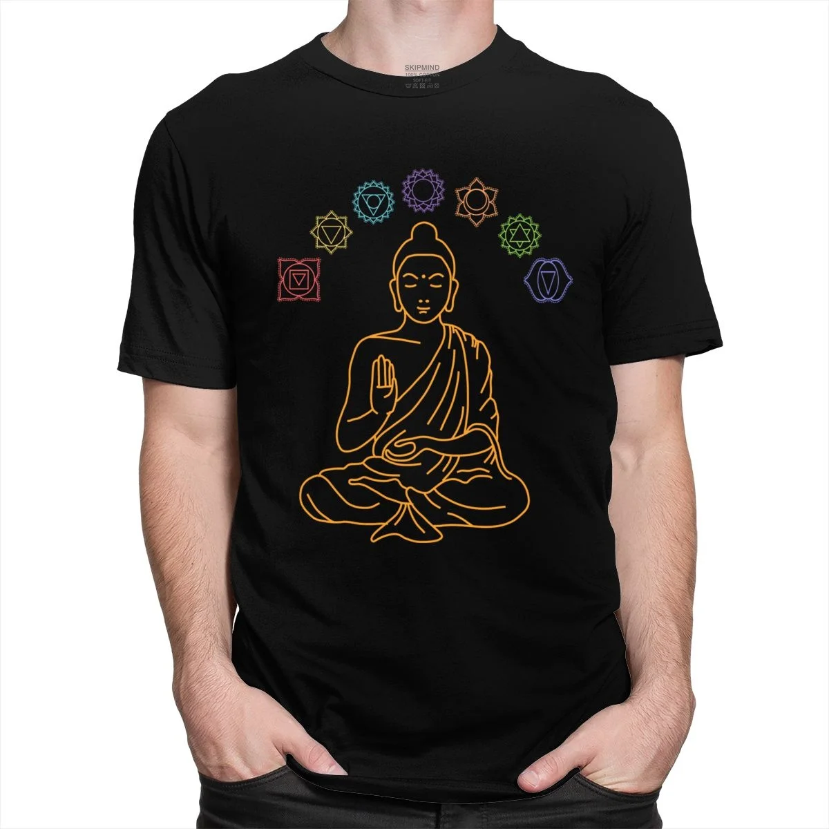 Футболка с изображением Будды семь чакр, Мужская хлопковая футболка с круглым вырезом и коротким рукавом, буддистская мандала, приталенная одежда