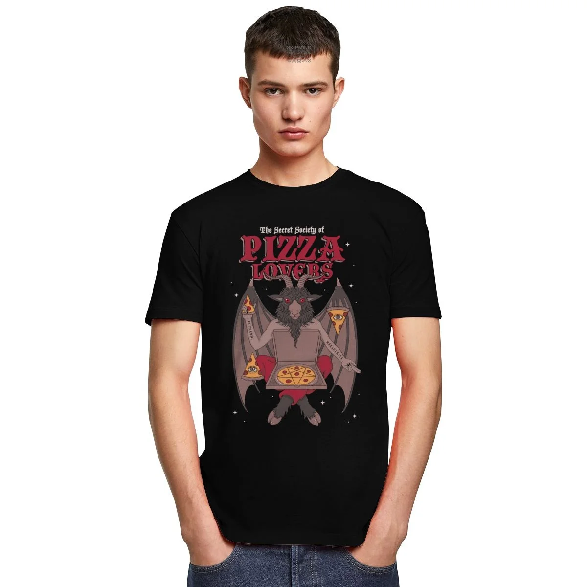 Мужская футболка Humor Baphomet, из чистого хлопка, с изображением сатаны, демона, оккультного козлиного черепа, топ с короткими рукавами, Повседневная футболка, футболка с изображением Люцифера