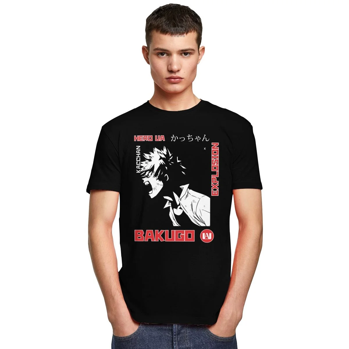 Новинка Boku No Hero academic футболка для мужчин с коротким рукавом Аниме Манга Bakugou Katsuki футболка из мягкого хлопка обычный крой футболка Мерч