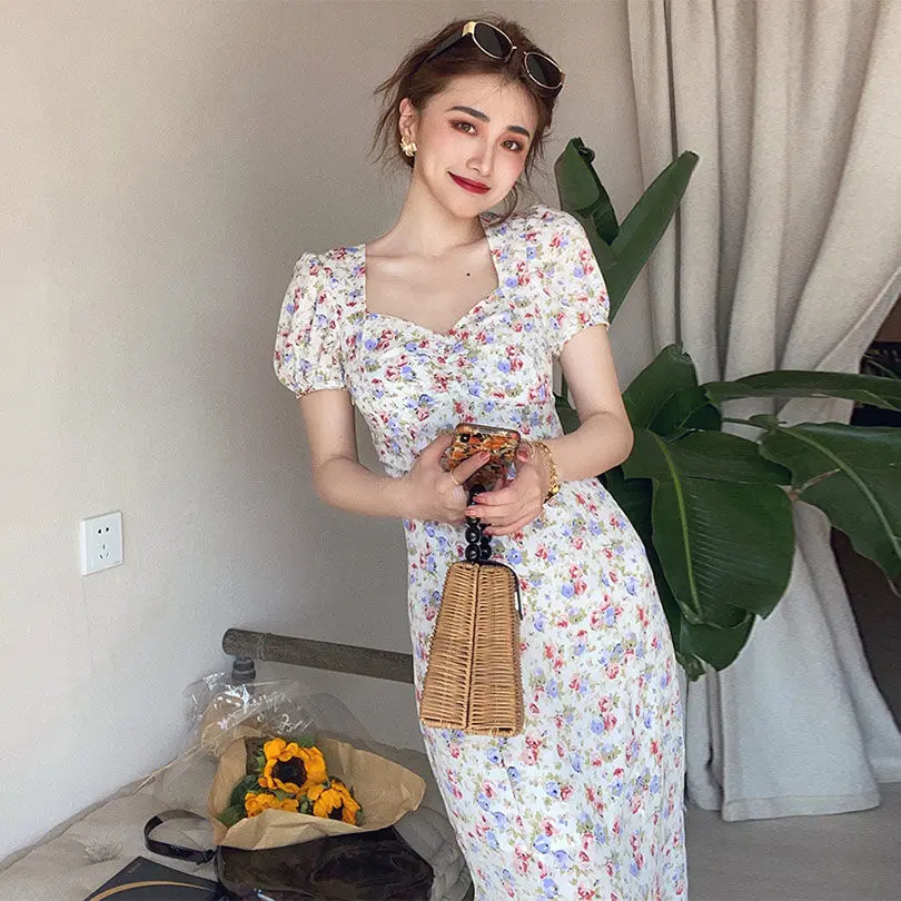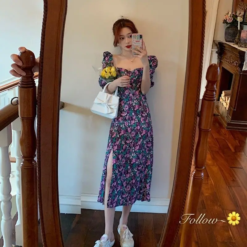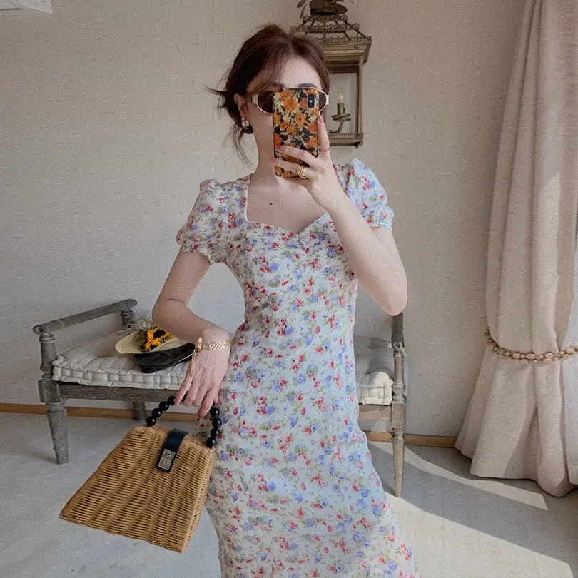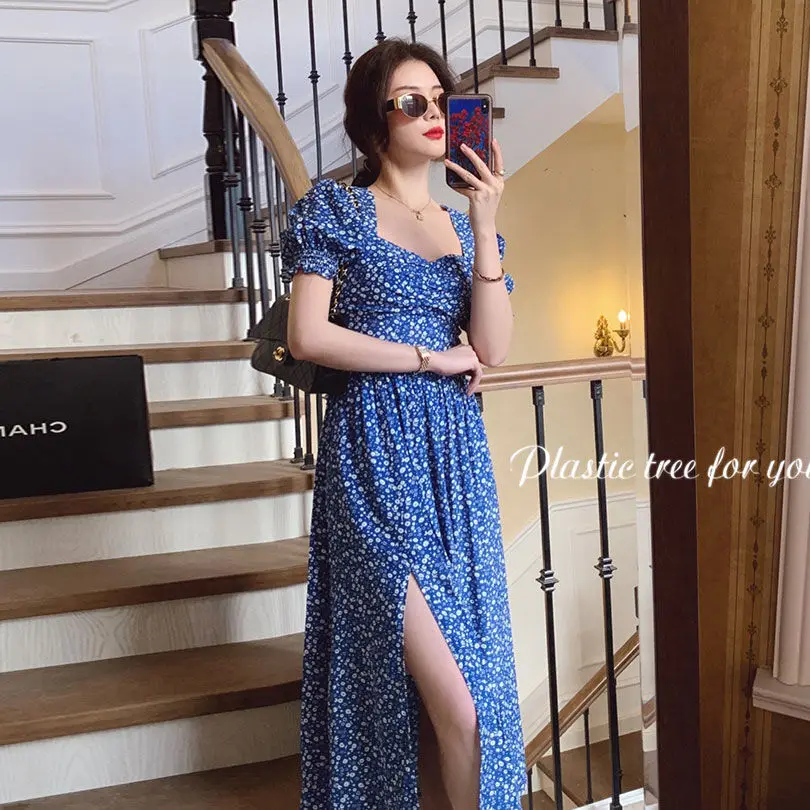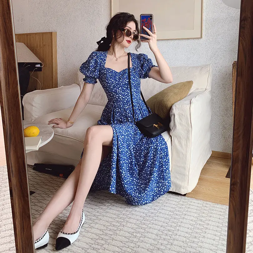 Ейстории 2020 Платья Миди Платье женское элегантное платье А-lineShort рукав летние женские вечерние квадратный воротник в стиле Бохо в Корейском стиле, Vestidos, в винтажном стиле