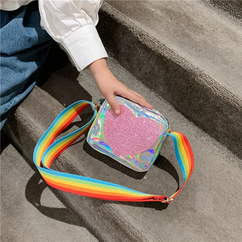 Прямая продажа с фабрики детская маленькая сумка Женская Новинка 2019 персиковая блестящая Детская сумка-мессенджер через плечо с сердцем