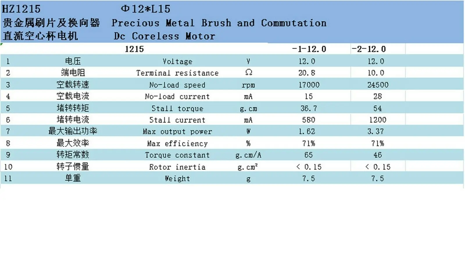 1215 12 мм * 15 мм на бесколлекторном двигателе с двумя осями DC6V-...