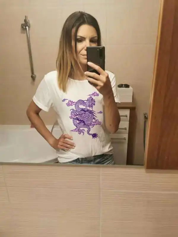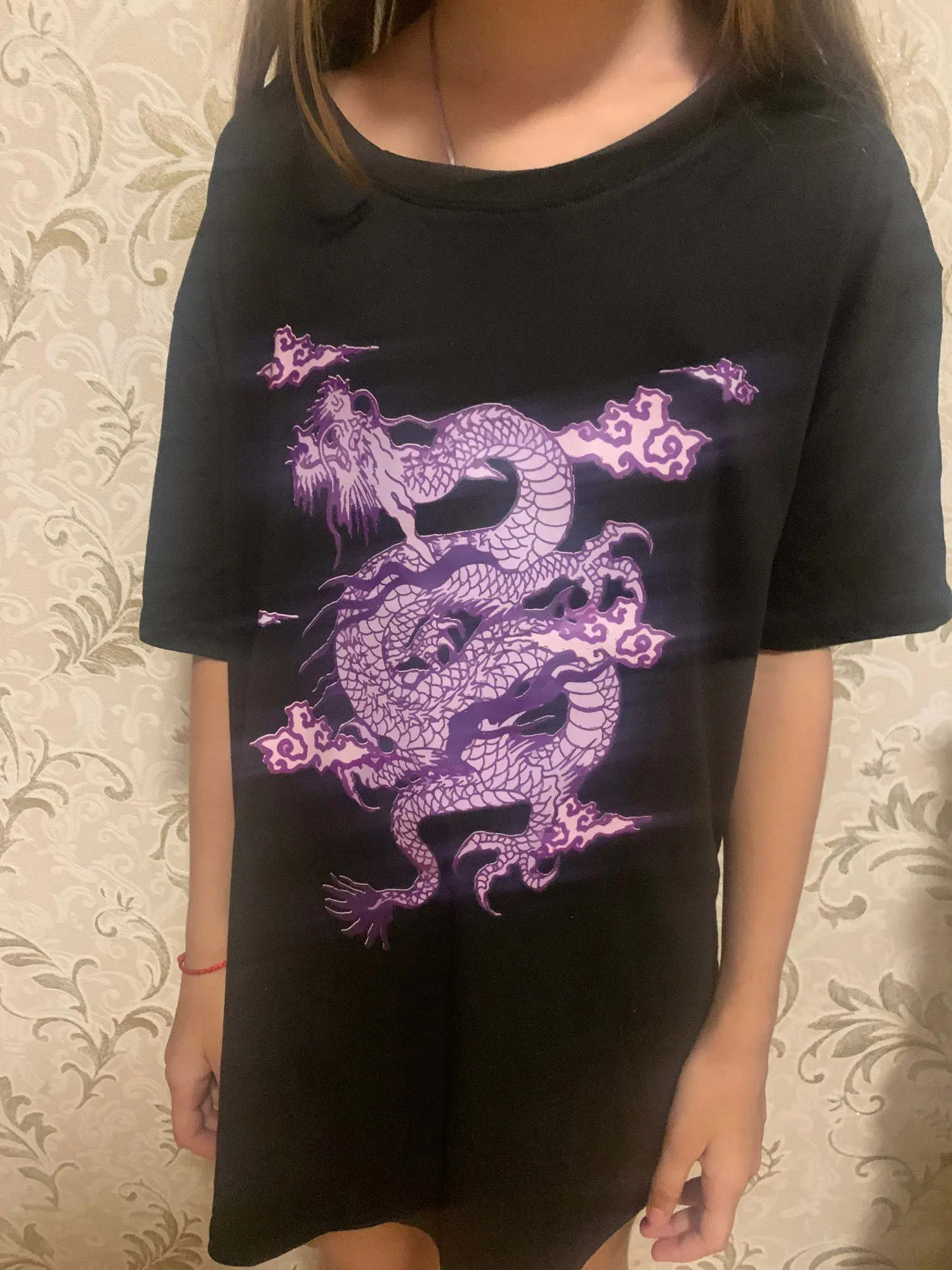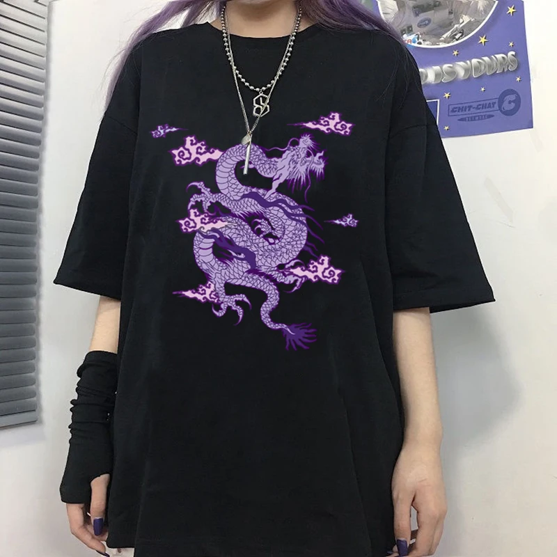 Модный уличный Топ, женская футболка в стиле Харадзюку, ретро фиолетовая футболка с китайским принтом дракона, летняя новая свободная повседневная женская футболка оверсайз