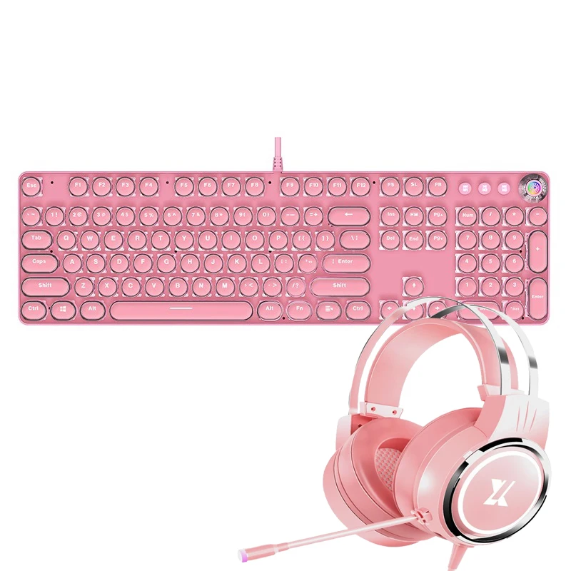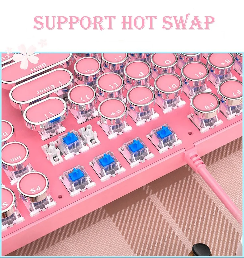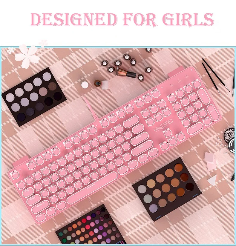 Подарочная клавиатура для девочек, розовая клавиатура для игр, офиса, ноутбука, настольного ПК, панк, ретро, панк, 104 клавиш, механическая клавиатура с зеленым переключателем