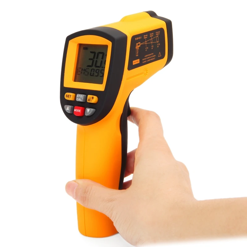 Этот инфракрасный термометр используется для измерения температуры поверхности объекта, который подходит для различных горячих, опасных или труднодоступных объектов без безопасного и быстрого контакта.