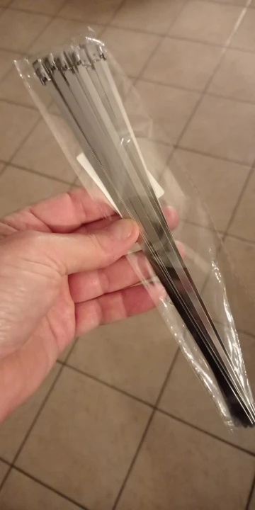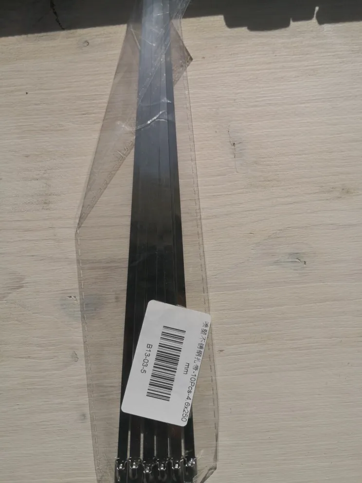 Посылка шла около трех недель до Калининграда. Качество стяжек на высоком уровне. Стальные полоски шириной 5 мм. Пробовал разорвать руками, чуть не порезал ладонь. Можно использовать для организации кабельных прокладок, а можно и в качестве браслетов ил замков на двери. У кого какие цели. В любом случае продавцу спасибо. Магазин рекомендую.