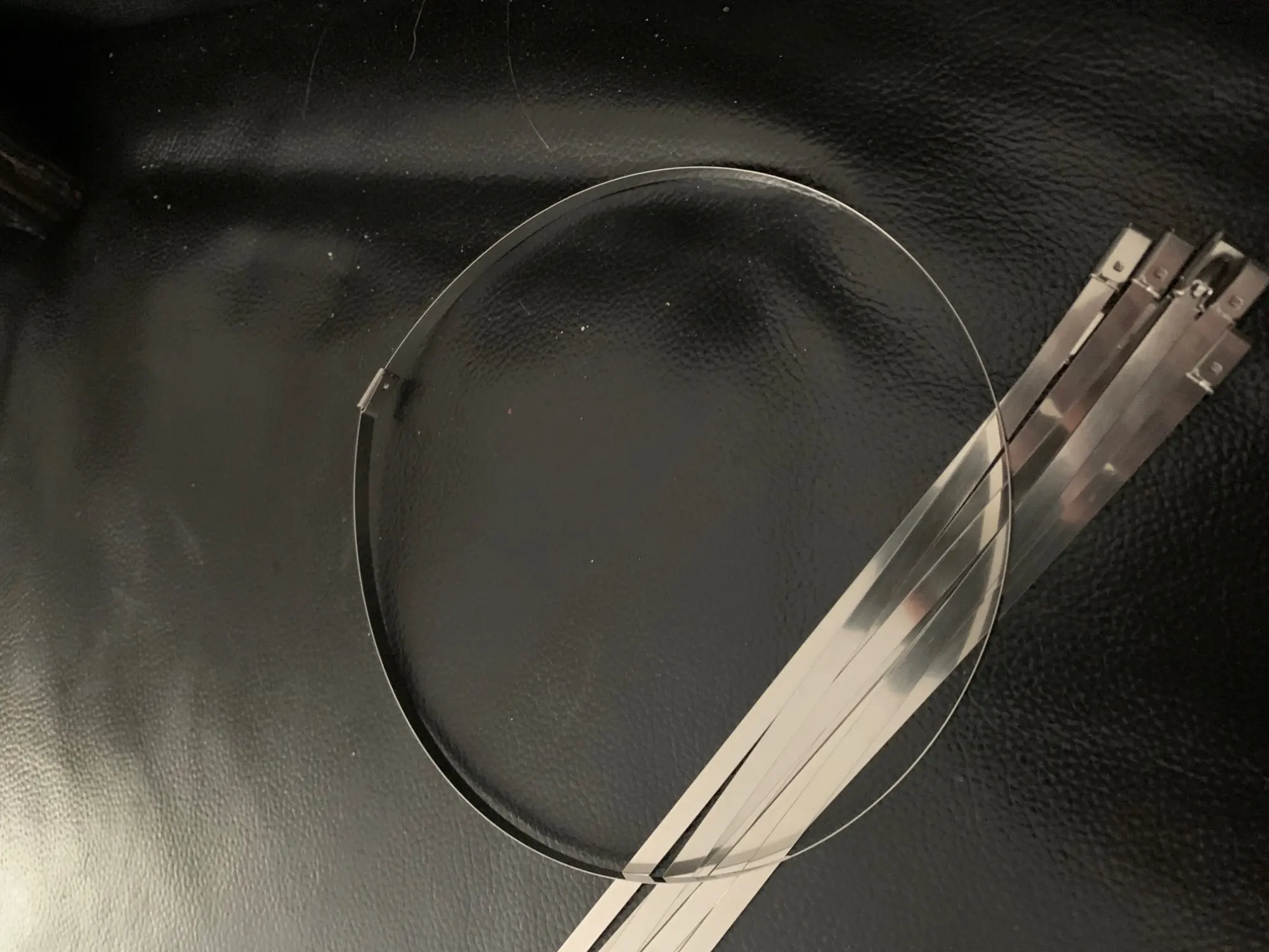 фиксация мгновенная, ширина примерно 5мм. нержавейка. подойдет для фиксации где высокая температура или механические воздействия.