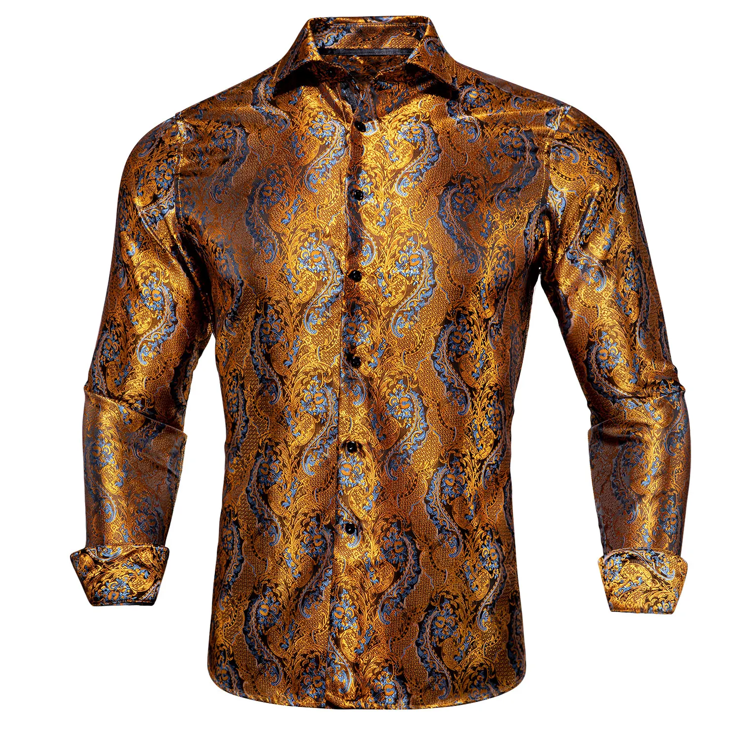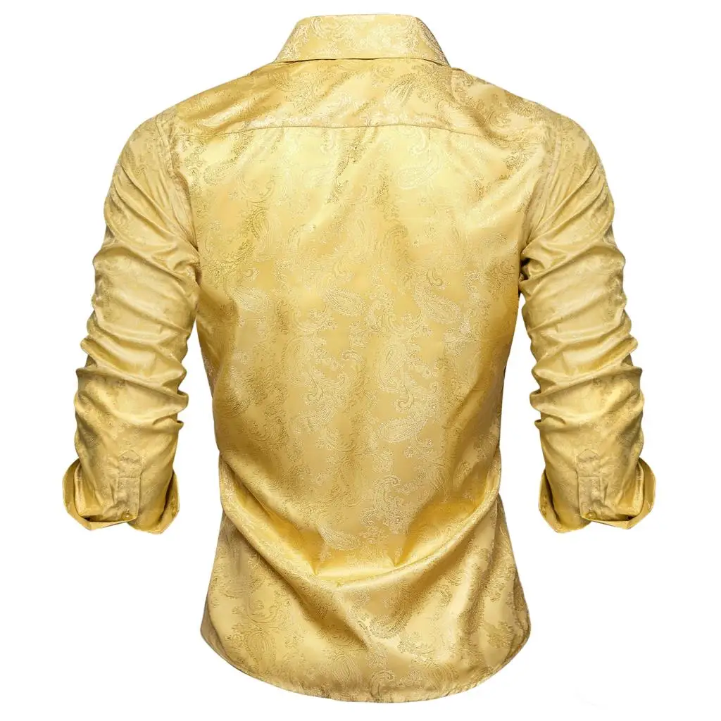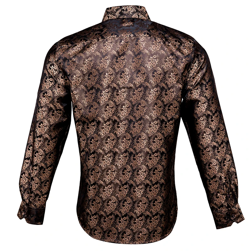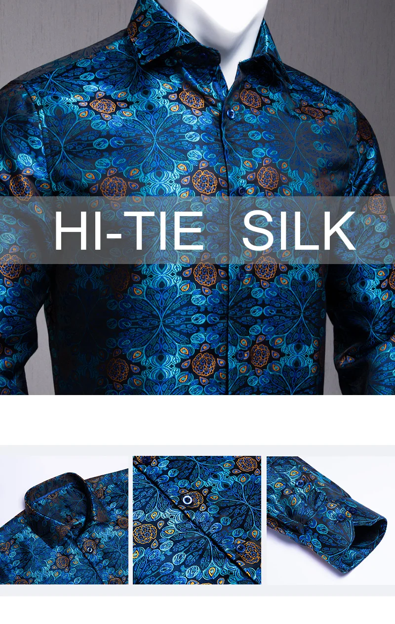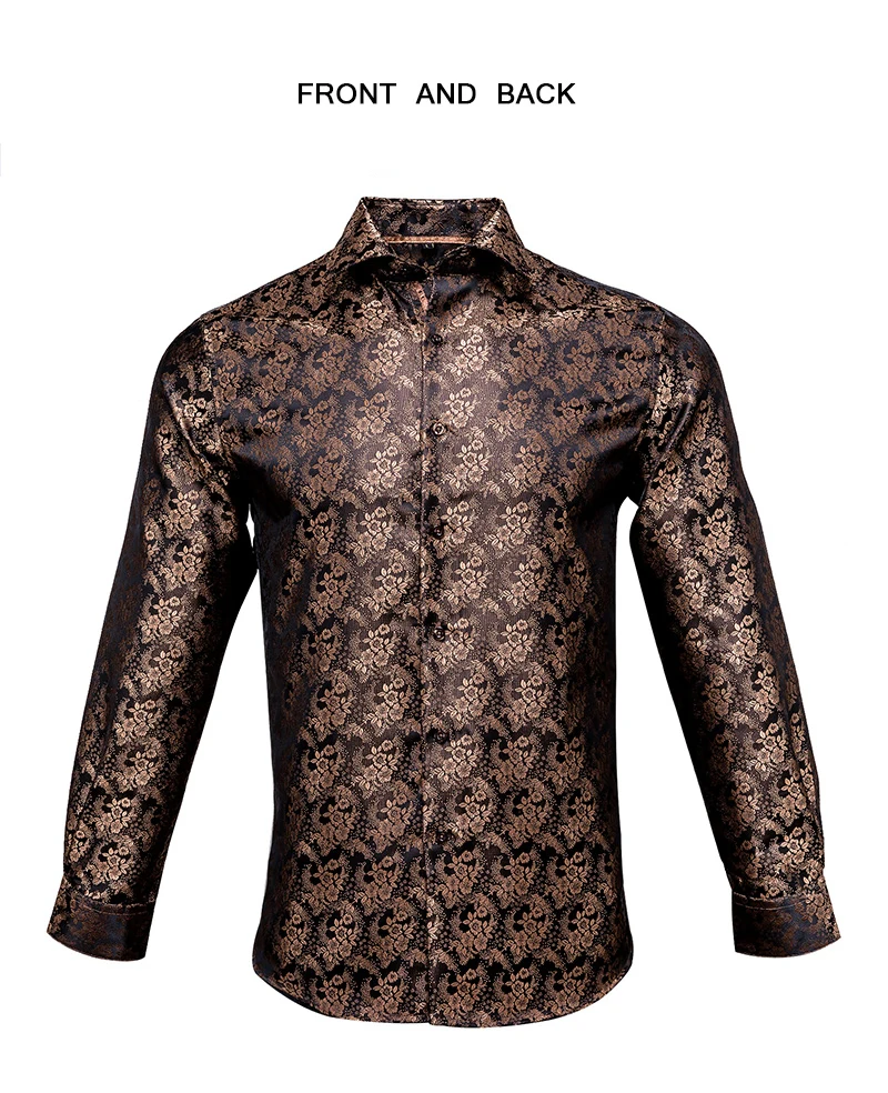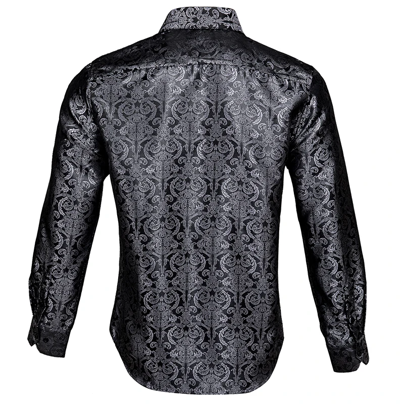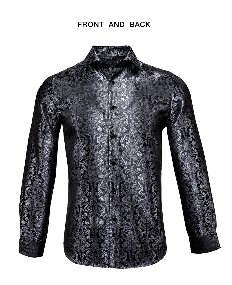 Hi-Tie 100% шелк роскошная черная золотая вышивка Пейсли Мужская рубашка с длинным рукавом мужская повседневная рубашка на пуговицах верхняя одежда подарок